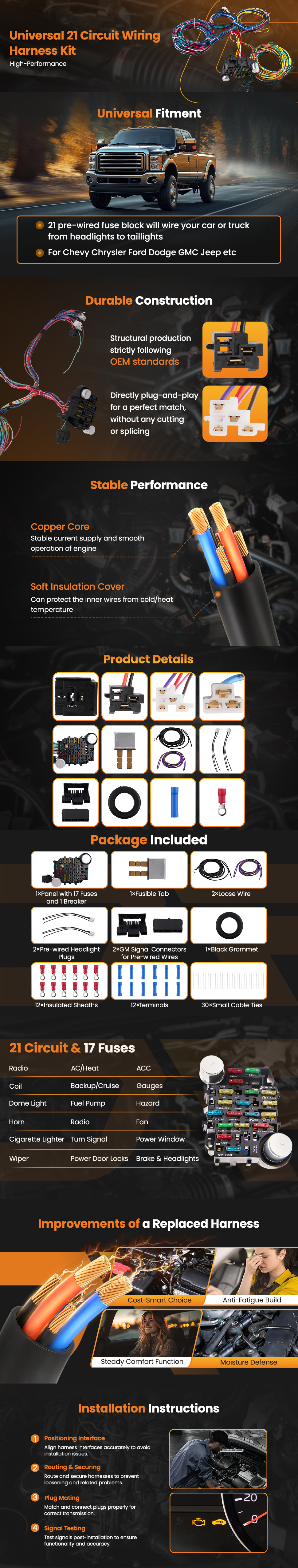 * 21 Circuits 17 Fuses Wiring Harness Kit