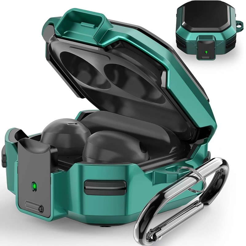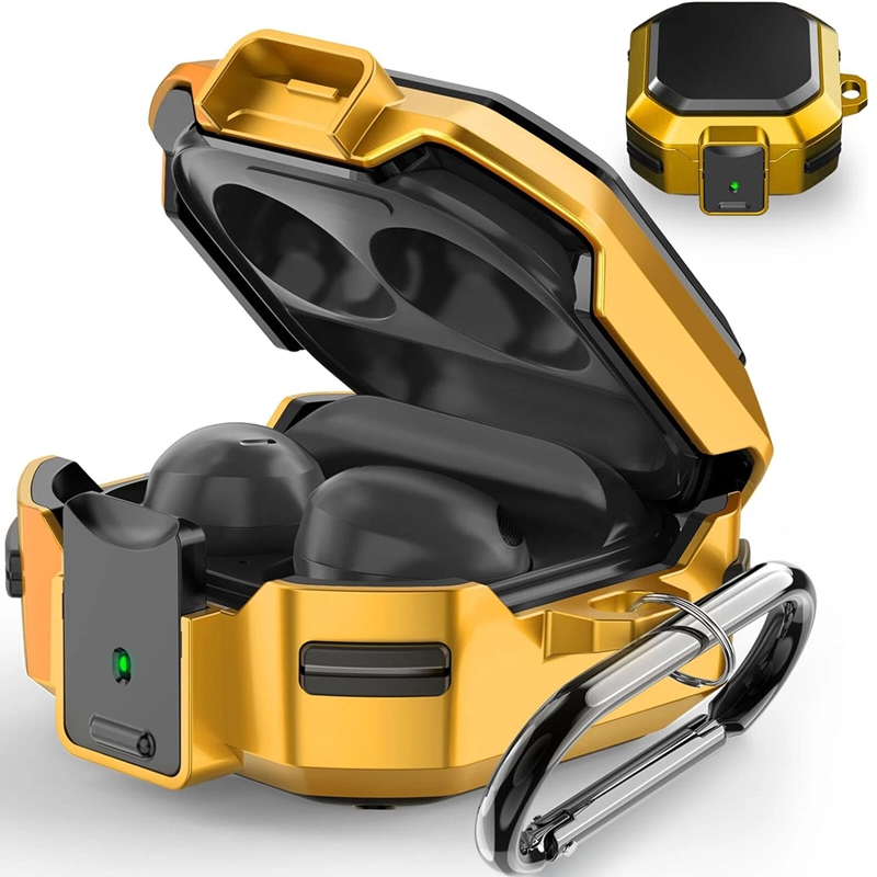 【Safety lock Design and Usage】: The earphone shell is composed of upper and lower shells, adopts a split structure, and has a safety lock function on the front. Press the front locking button to automatically open the top cover. Don't worry about the top cover automatically opening the earphones and dropping and losing your Galaxy Buds Live/Pro/2 when you're out.