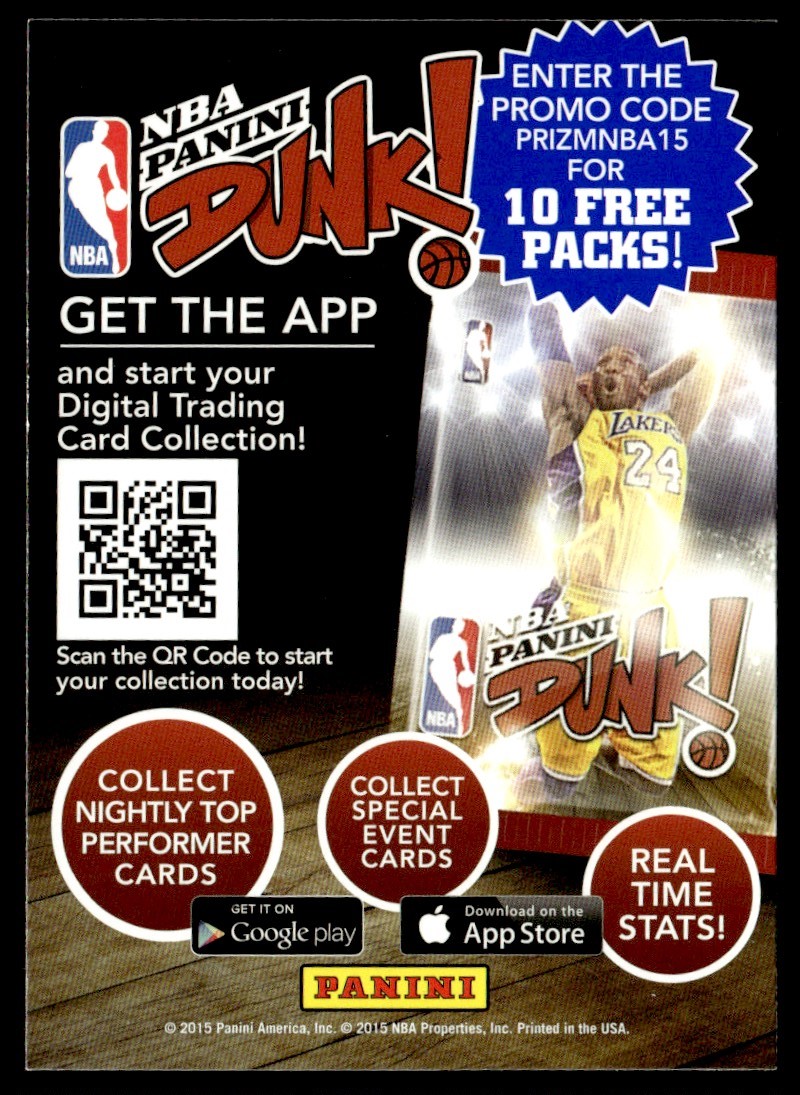 2015-16 Panini Dunk!f Promo Card Kobe Bryant Los Angeles Lakers