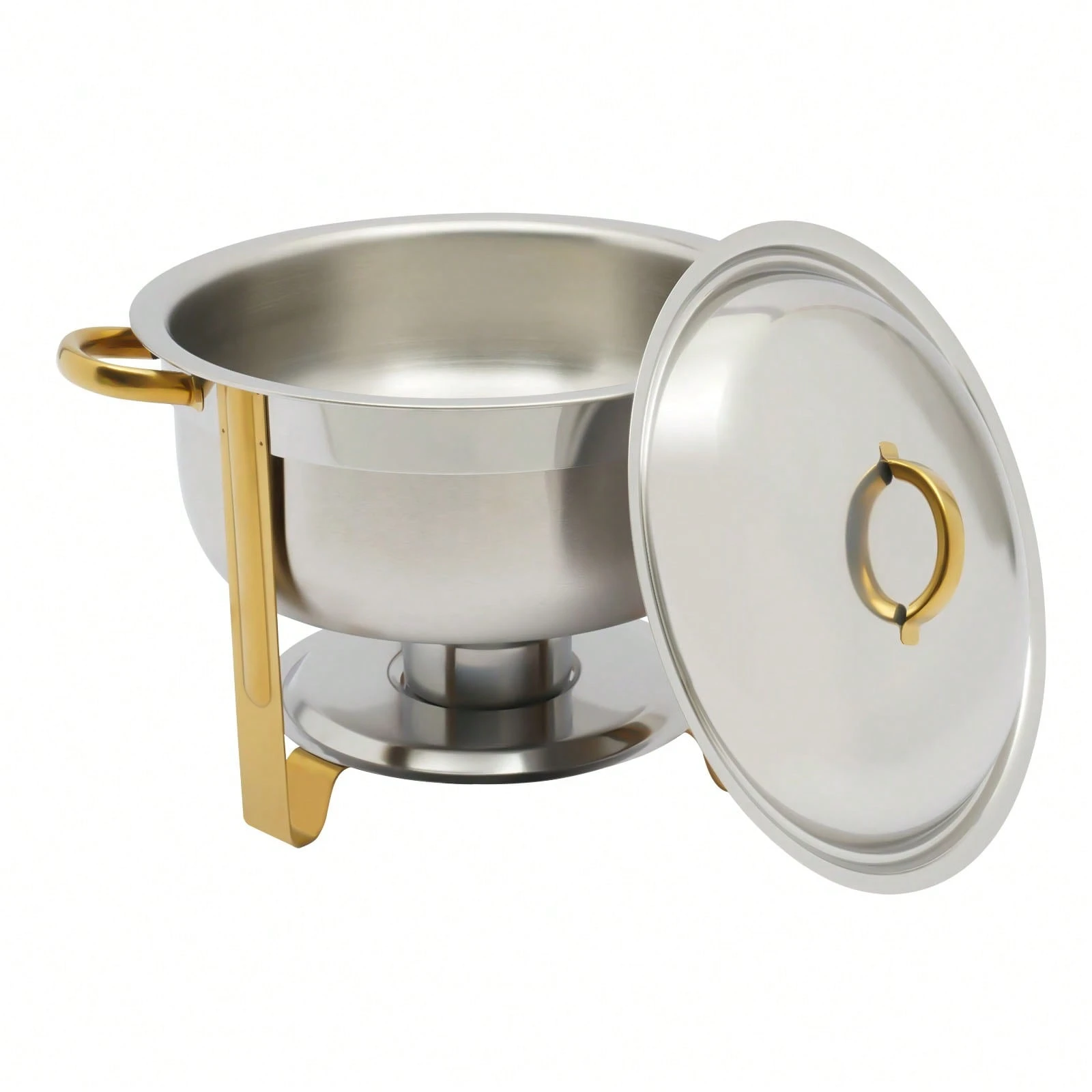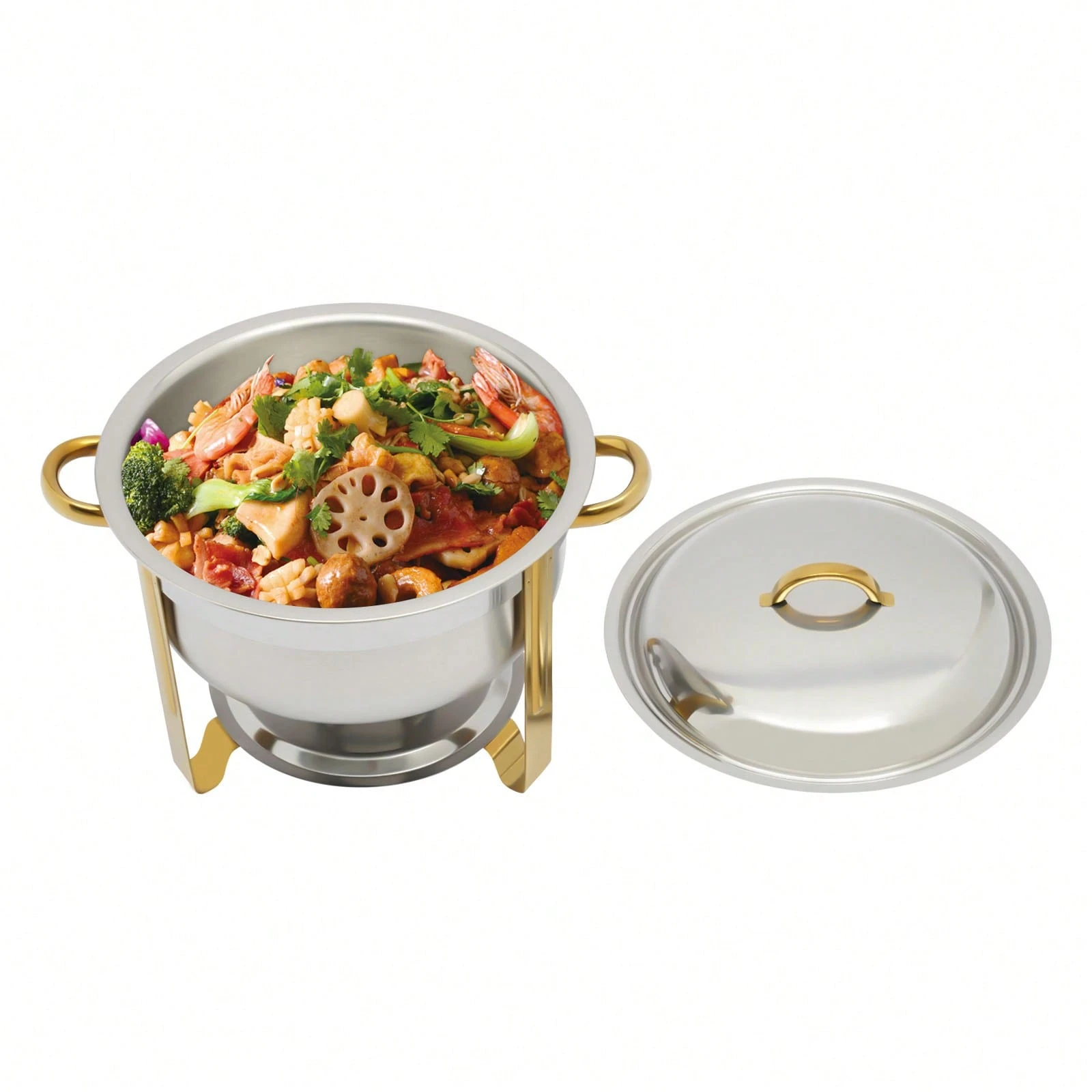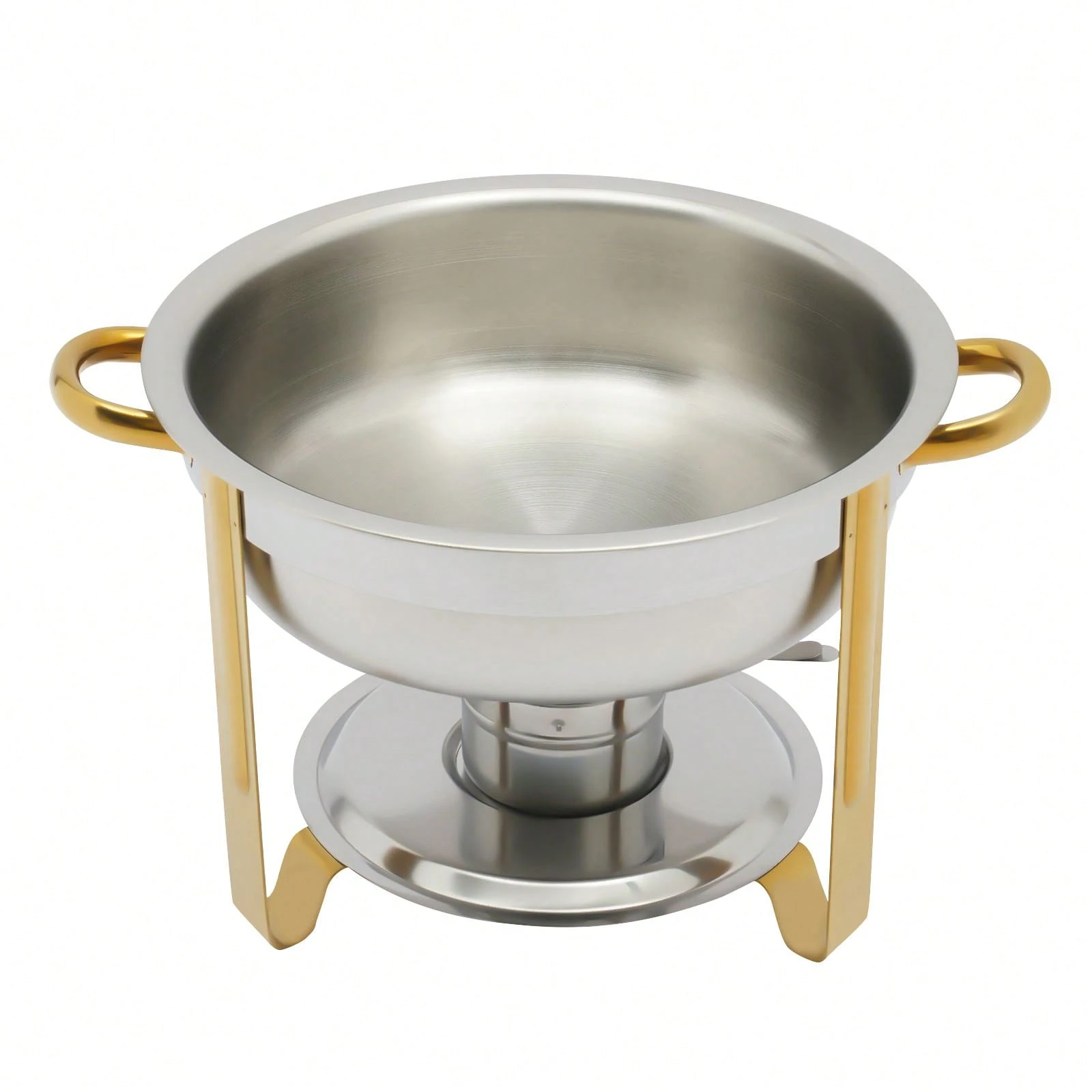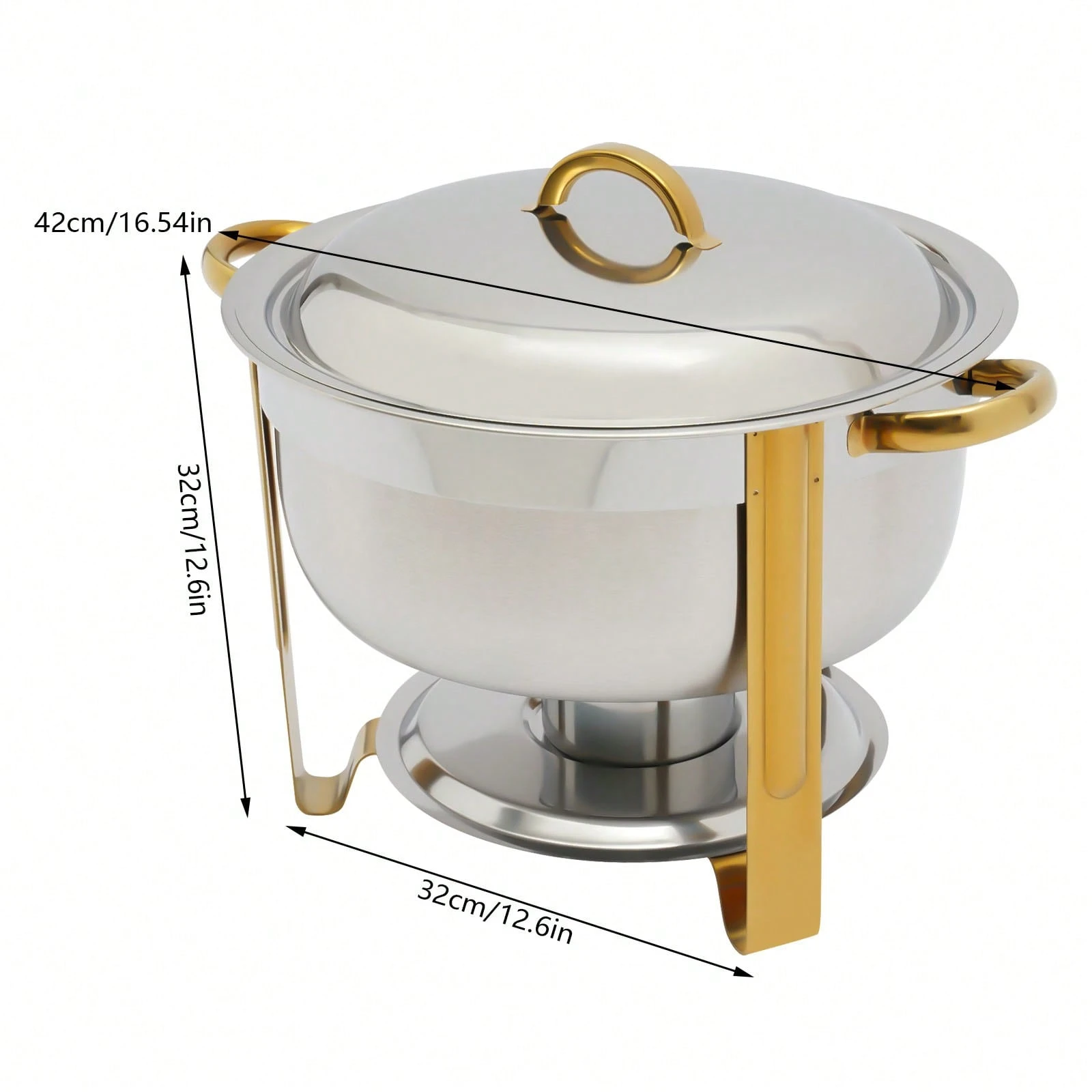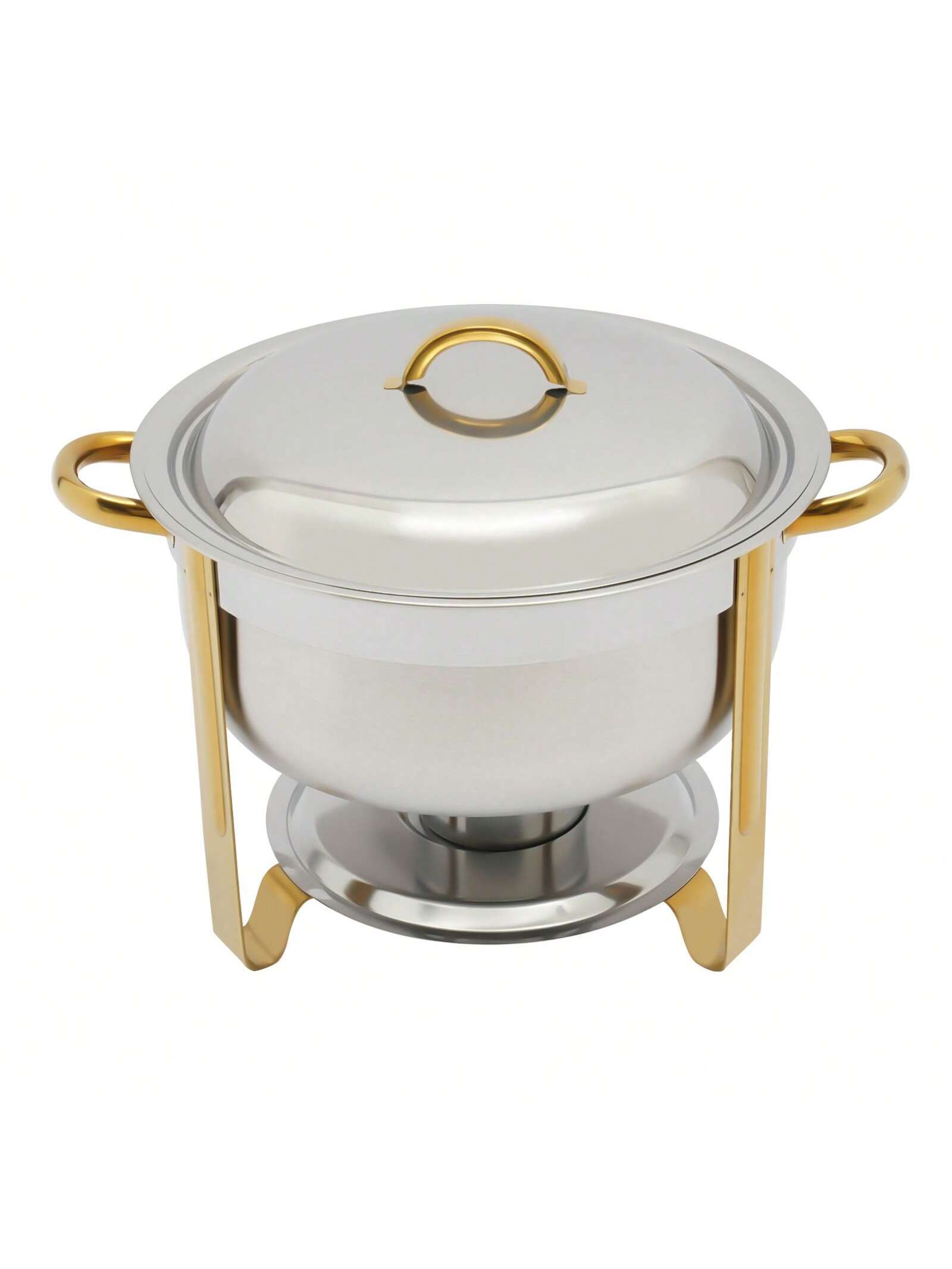 Der Edelstahl Chafing Dish mit einem Fassungsvermögen von 5 Litern ist die perfekte Lösung für Buffet und Catering. Mit seinem eleganten goldenen Finish ist er nicht nur funktional, sondern auch ein echter Blickfang auf jedem Tisch. Dieser vielseitige Wärmespeicher eignet sich ideal für die Warmhaltung von Speisen bei Veranstaltungen, Feiern oder im Gastronomiebereich. Sein robustes Material sorgt dafür, dass die Speisen gleichmäßig und zuverlässig warmgehalten werden, während die runde Form eine ansprechende Präsentation ermöglicht.