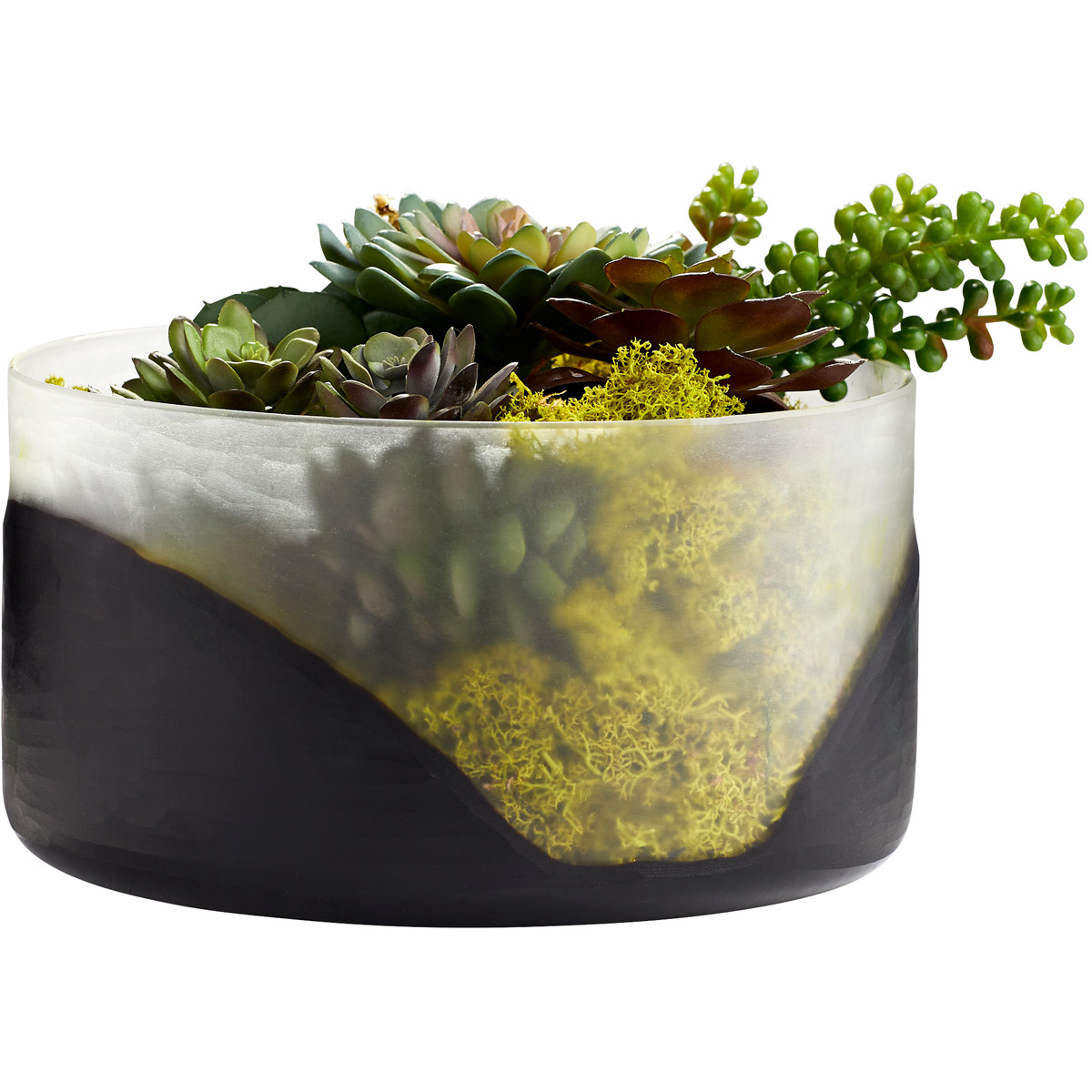 The magnificence behind the Ominous Frost Vases is its subtle transition from dark monochrome to translucent frostiness. The concentric color forms that mark the circumference of the vase is beautifully mirrored by its cylindrical body.