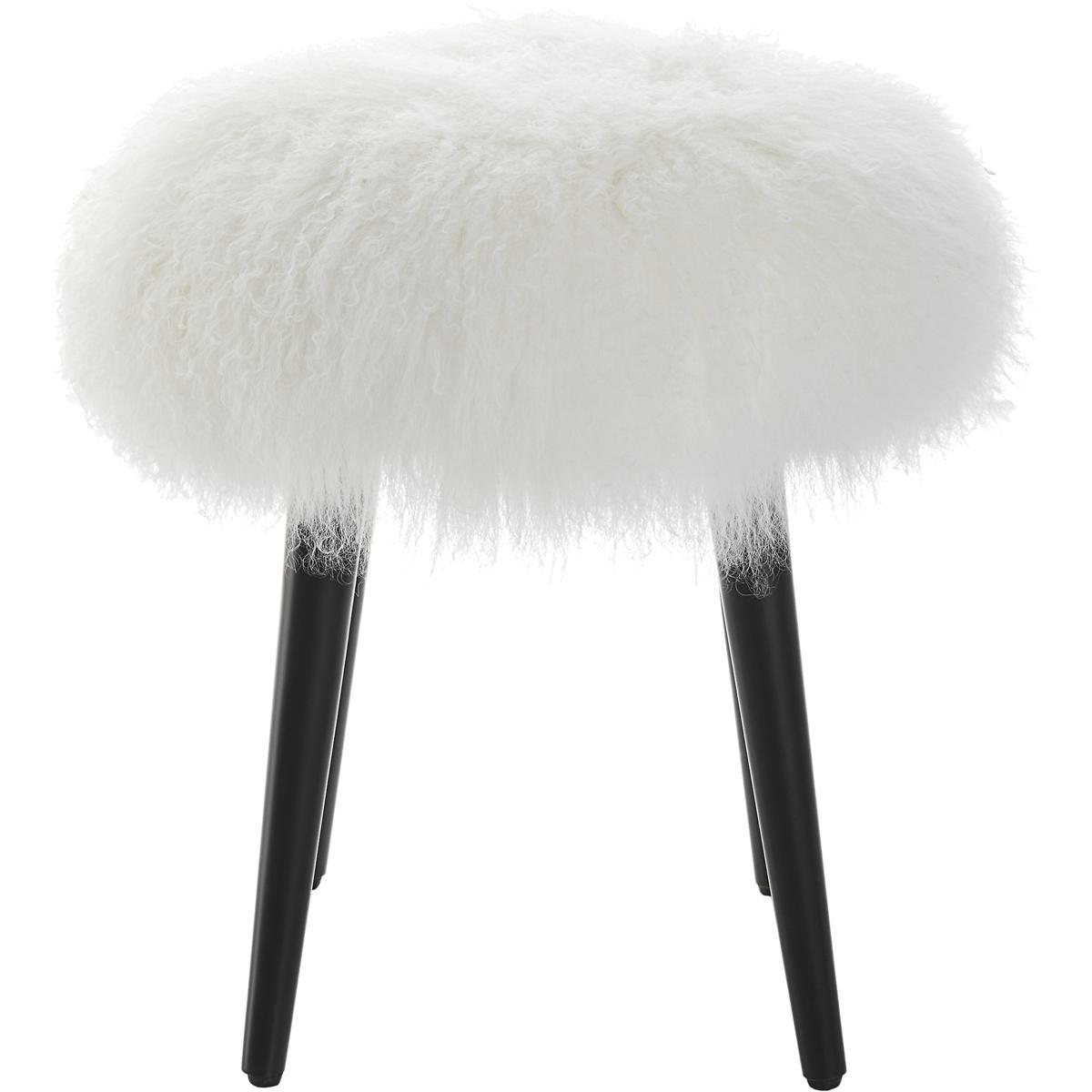 A True Conversation Piece, Upholstered In Unmatched Luxury Of Authentic White New Zealand Sheepskin On Solid Wood Tapered Legs In Matte Black.