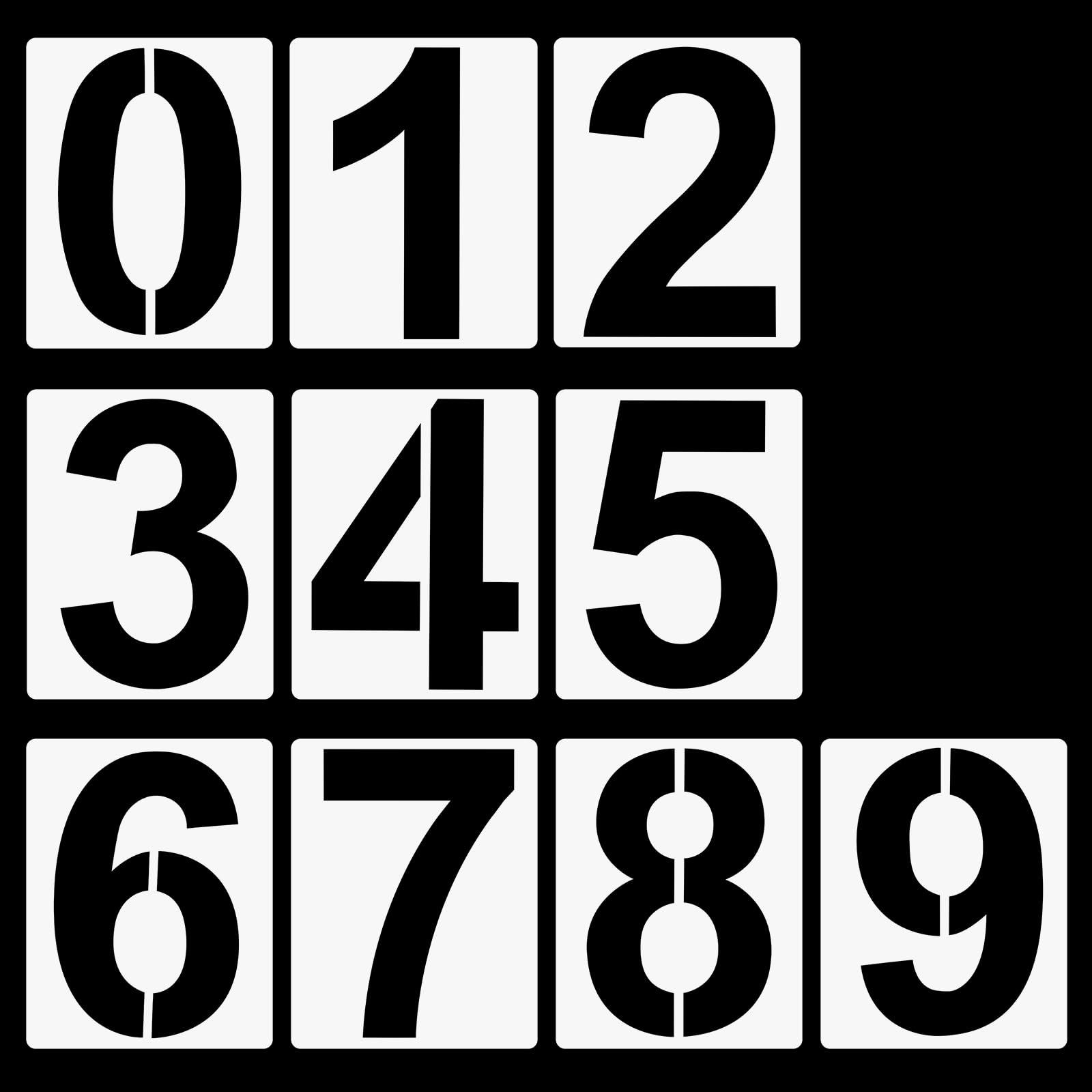 - Packaging Details: The package contains 10 6-inch number stencil from 0 to 9, and the size of the numbers is 5.4 inches. You can match large number stencils into the numbers you want