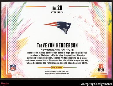 2025 Panini Prizm Color Blast #20 TreVeyon Henderson RC Rookie SP PATRIOTS