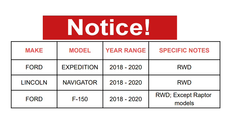 MAKE | MODEL | YEAR RANGE | SPECIFIC DETAIL |
