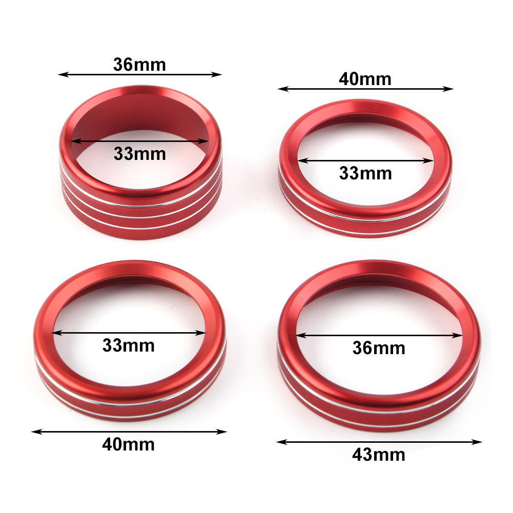 4x Air Conditioner Switch Knob Ring Cover Trim For Jeep Wrangler JL2018-2020 Features: •Easy installtion automotive adhesive tape is attached •Give your car interior a dash of color with a modern, luxurious, and sporty look and feel! Description: -Condition: 100% Brand new -Material: Aluminum Alloy -Color:Red(Blue/Silver are available. Plz leave a note about color you want when place order, or will ship Red, thank you!) Fitment: Only for Jeep Wrangler JL 2 Door and JL Unlimited 4 Door2018-2020, including Sahara, Rubicon, Freedom. (NOT for JL Sport/Sports) Please make sure the item suit for your car before place order, thank you. Package Included: 4PCS Installation method: 1.Pls use alcohol or agent to clean the position of the installation (to make sure it without the grease.Wax or dust etc.) 2.pls ensure the position of installation can be completely fit the case before install, (Note: if there any questions or misfit,please contact us) 3.Rive the strong double-sided adhesive of the back , if meet the case of a relatively low temperature, please heating it via the hair dryer or lighter . 4.According to the comparison stick up it and press about 1-2 minutes (Note:do not wash your car in 24hours , the adhesive should be fixed after 12 hours ) 5.The installation have been completed , DIY item. Easy to install