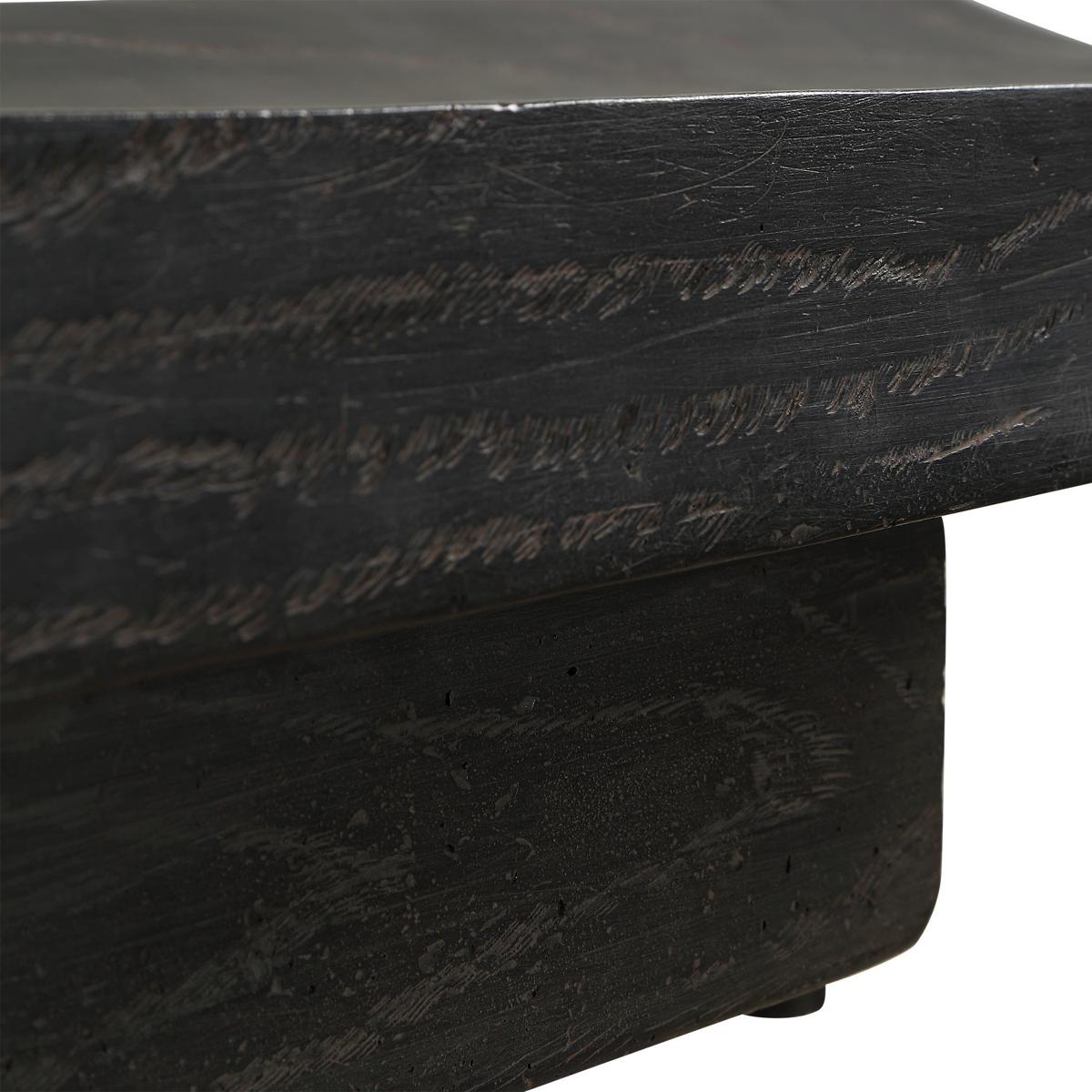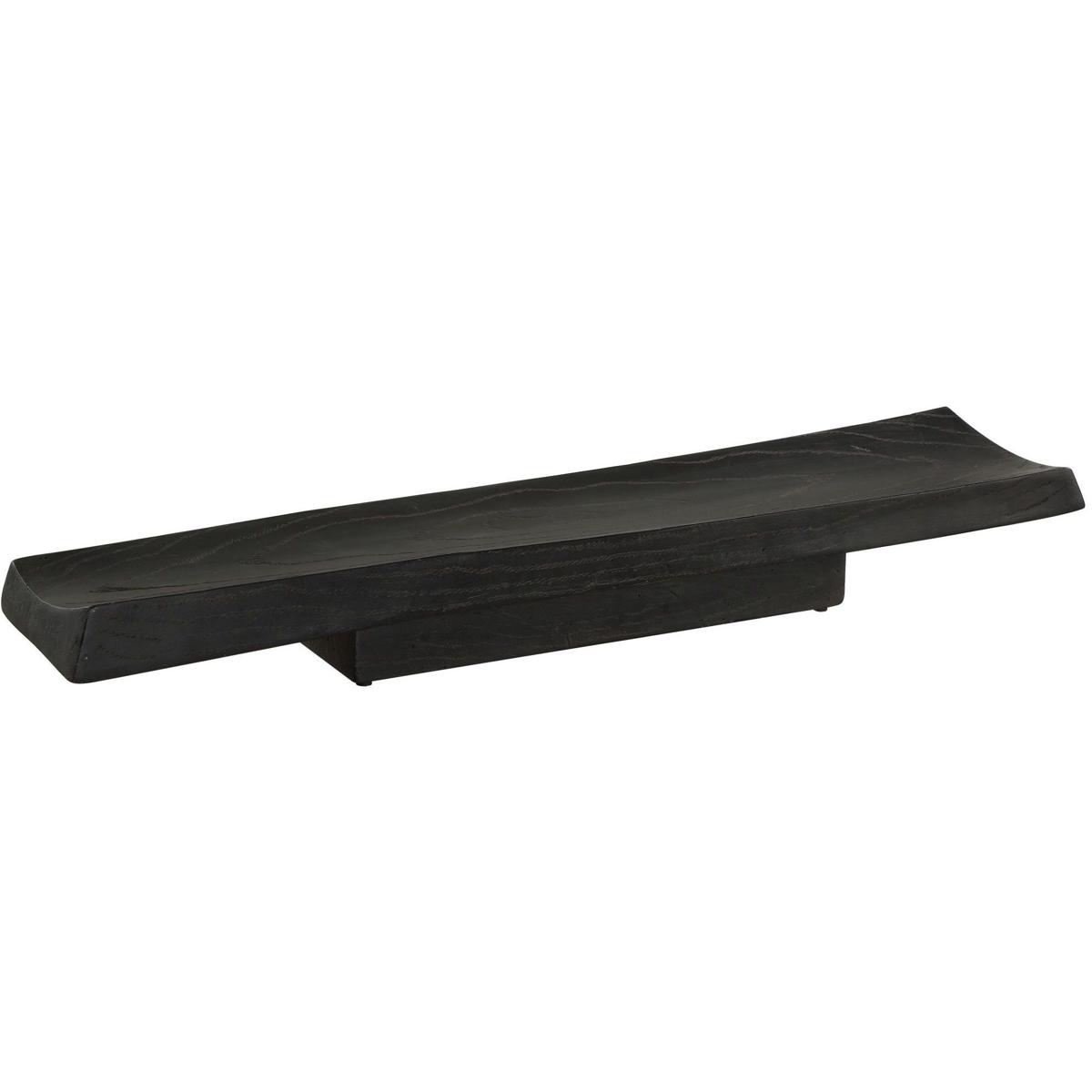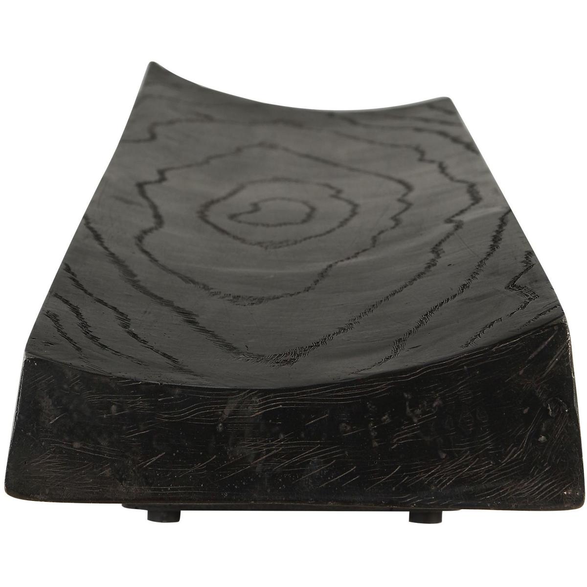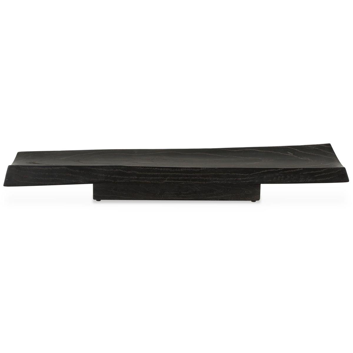 This Elegant Tray Is Finished In Deep Black, Featuring A Casted Wood Grain Design That Adds A Natural, Rustic Texture. Its Elongated, Subtly Curved Shape Makes It A Sophisticated And Versatile Piece, Perfect For Display Or Serving. Safe For Outdoor Use, But Protection From Freezing Temperatures Is Recommended.