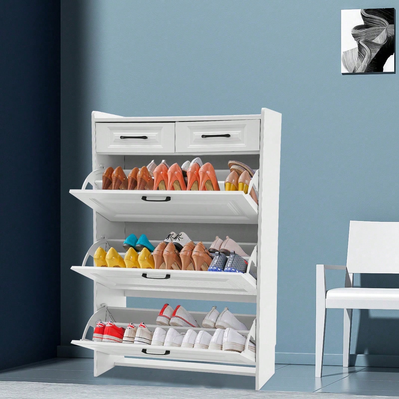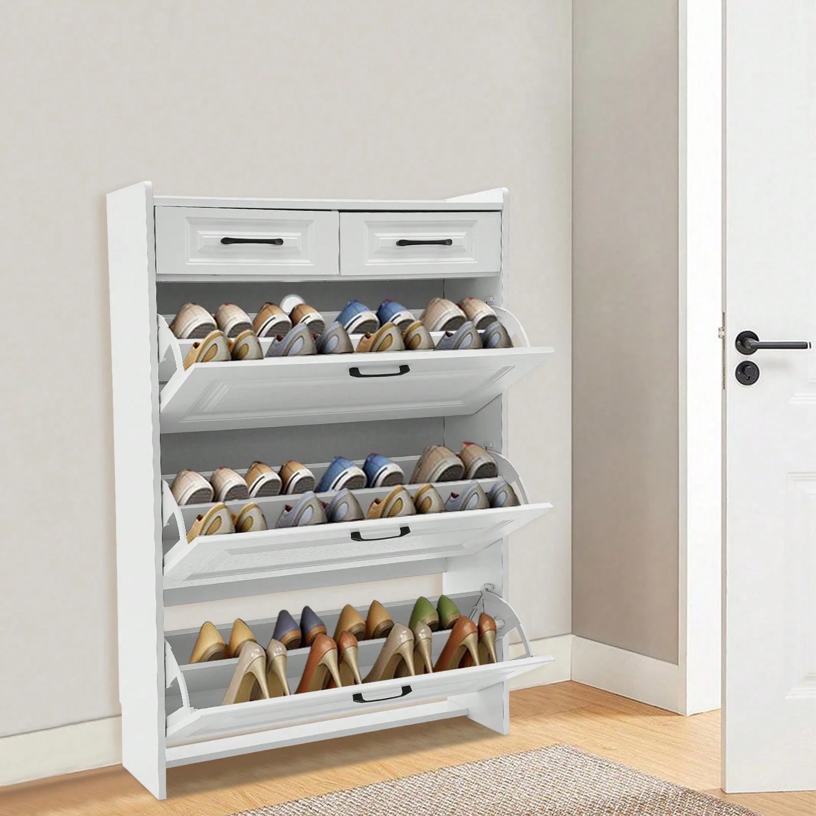 Slim White Switch Schuhschrank mit 3 großen Flip-Flop-Schubladen Billig24