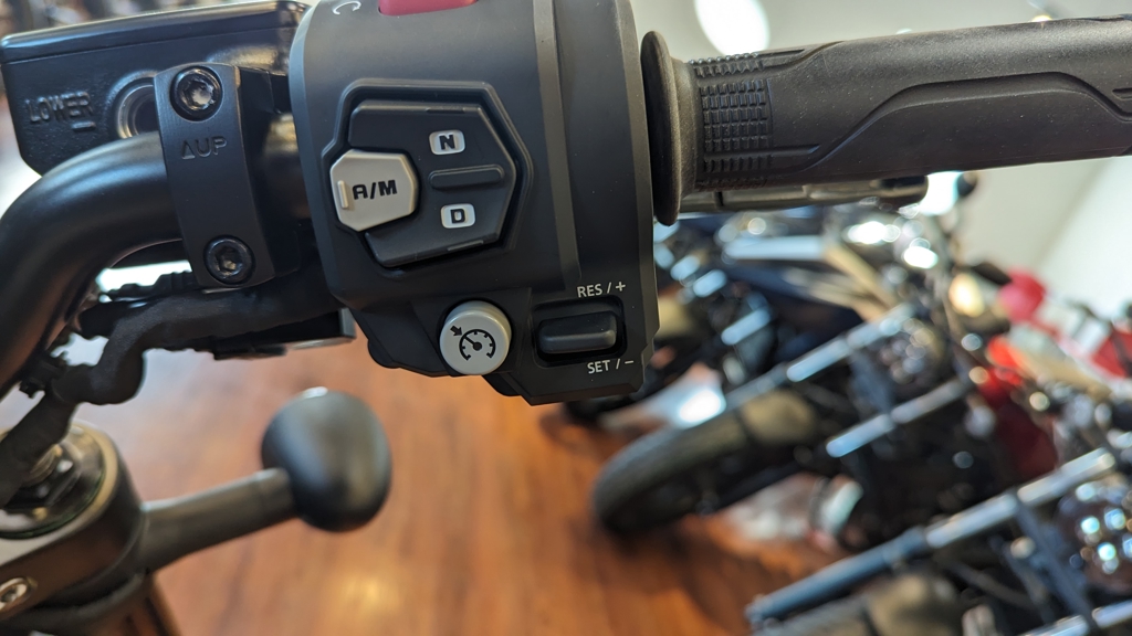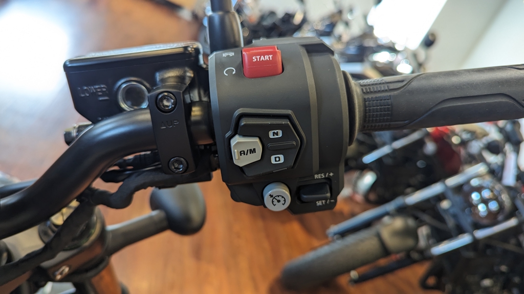 Displacement: 66.1 cu. in. (1084 cc) Engine Type: Parallel Twin Bore and Stroke: Bore: 3.62 in. (92 mm); Stroke: 3.21 in. (81.5 mm) Cooling: Liquid Compression Ratio: 10.5:1 Fuel System: Gas Transmission: Manual / Automatic Clutch Front Suspension: Telescopic Fork Rear Suspension: Twin Sided Swing Arm Front Brakes: Hydraulic Disc Rear Brakes: Hydraulic Disc Front Tire: Dunlop® 130/70-18 Rear Tire: Dunlop® 180/65-16 Wheelbase: 59.8 in. (1519 mm) Seat Height: 27.5 in. (698.5 mm) Rake: 28 Trail: 4.3 in. (110 mm) Fuel Capacity: 3.6 gal. (13.6 L) Speedometer: Standard Tachometer: Standard Odometer