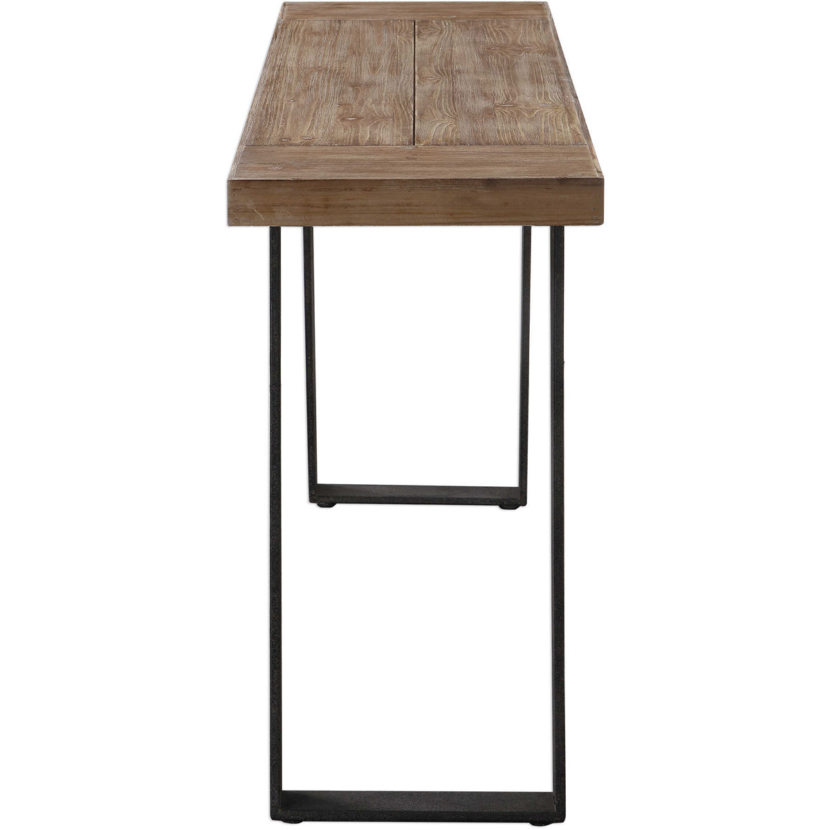 Constructed From Natural Fir Wood, This Console Table Features A Weathered Oak Finished Top Showcasing The Natural Wood Grain, Supported With Industrial Metal Legs Finished In A Textured, Aged Black Finish.
