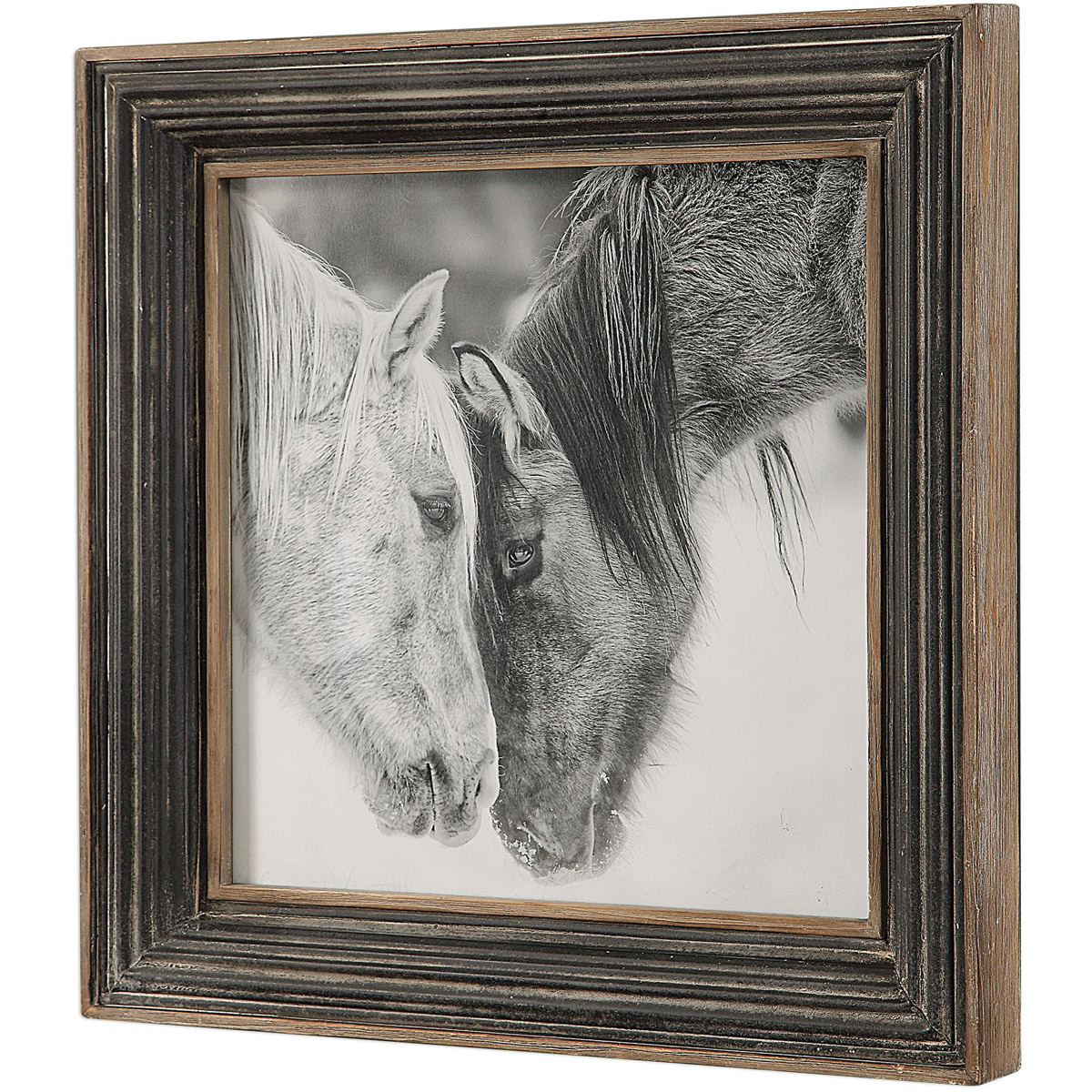 Black And White Print Accented By A Rustic Wood And Metal Frame, Featuring Corrugated Style Ridges, With A Distressed Black Finish And Gray Wash. Print Is Under Glass.