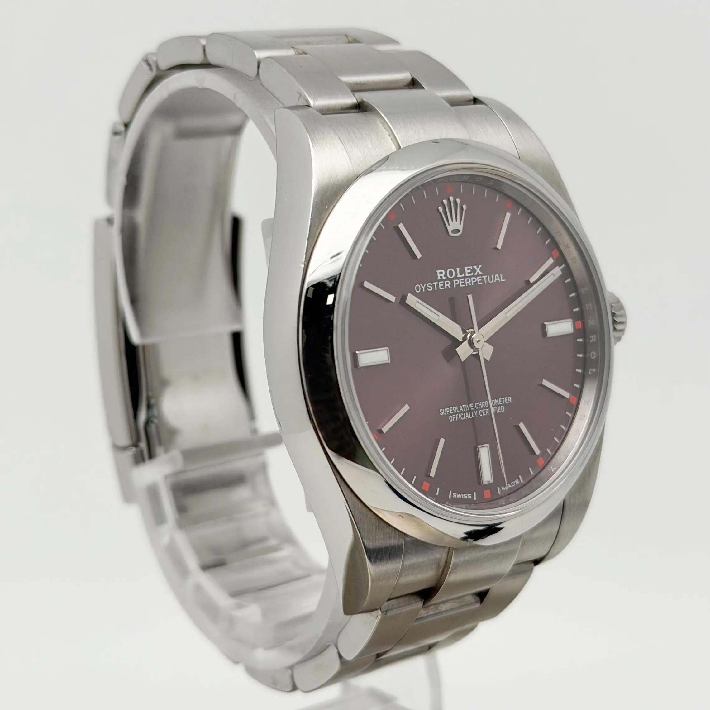 Rolex Oyster Perpetual 39mm Grape Sticks Dial Steel Automatic Mens Watch 114300