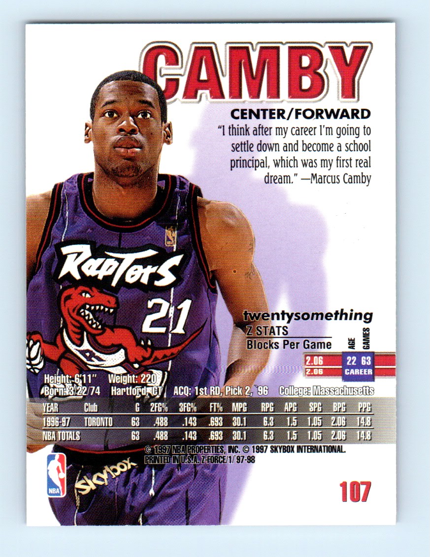 | 1997-98 SkyBox Z-Force Marcus Camby Toronto Raptors #107 |