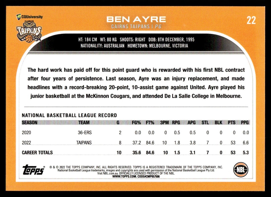 | 2022-23 Topps NBL Ben Ayre Cairns Taipans #22 |