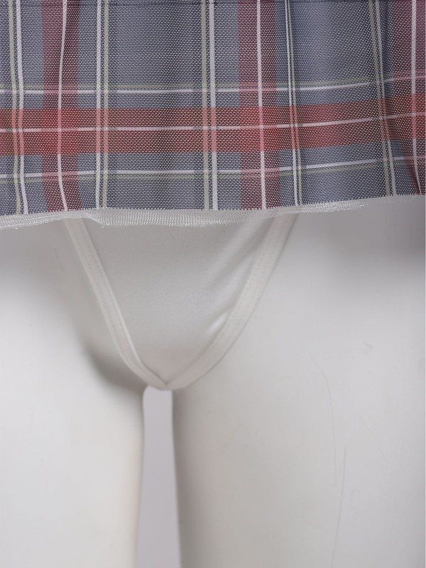The sheer plaid mini skirt and fishnet stockings create a and mysterious look, making you stand out in the crowd.