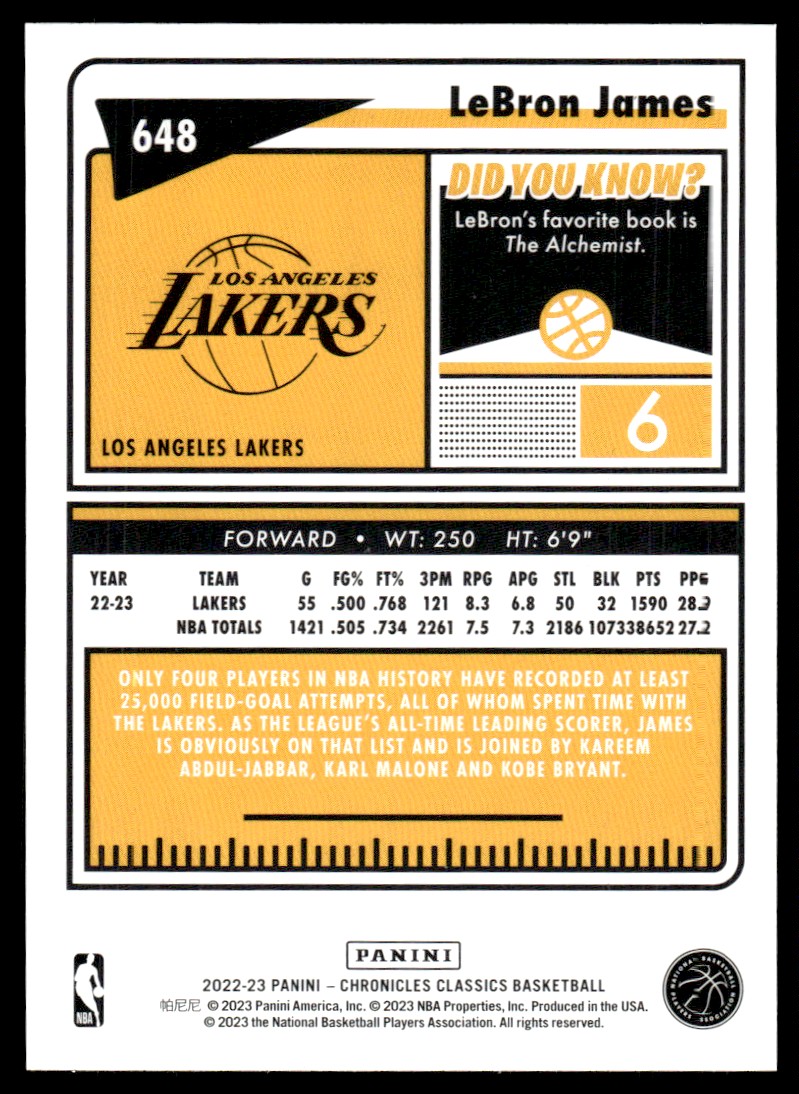 | 2022-23 Panini Chronicles Classics LeBron James Los Angeles Lakers #648 |
