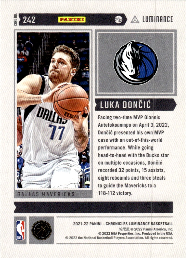 | 2021-22 Panini Chronicles Liminance Luka Doncic Dallas Mavericks #242 |