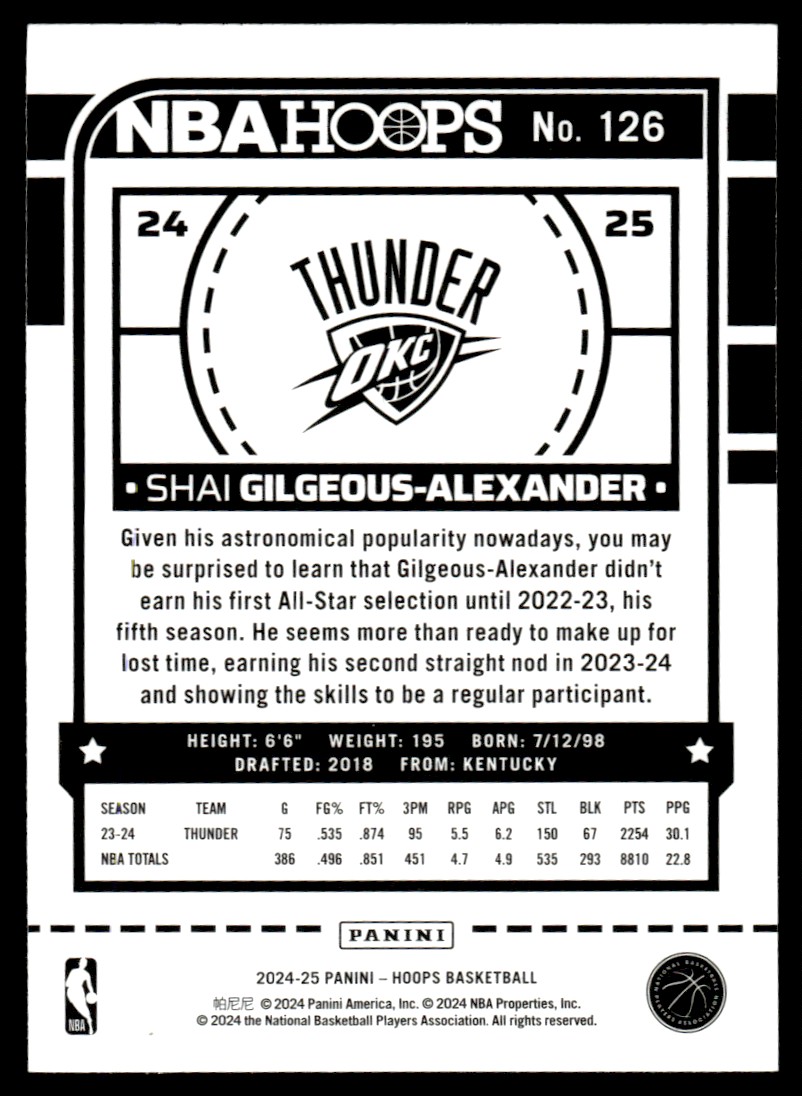 | 2024-25 Hoops Shai Gilgeous-Alexander Oklahoma City Thunder #126 |