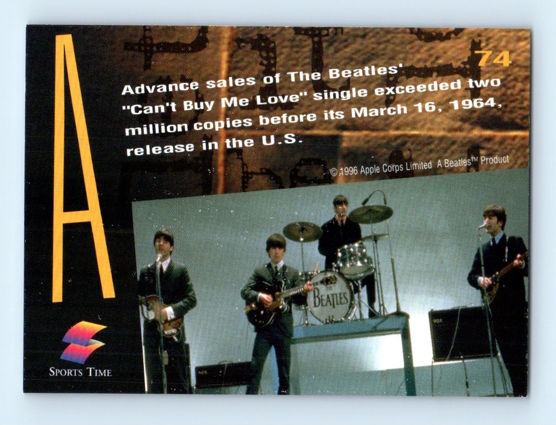 | Description: | The Beatles | | Category: | Music | | Year: | 1996 | | Product: | Sports Time | | Card Number: | 74 | | Dimensions: | 3½" x 2½" | | SKU: | MU MU0001 R01 F (17) |