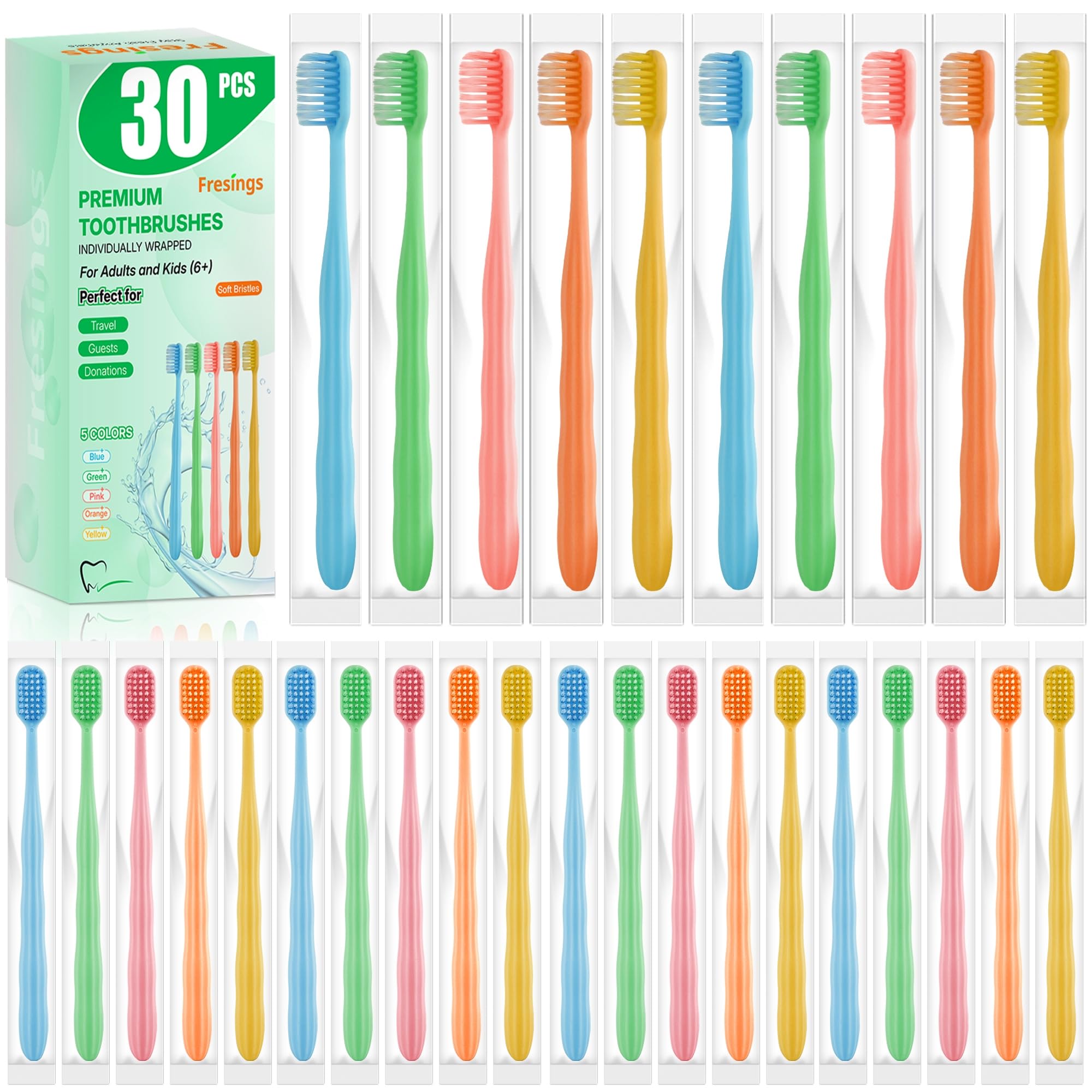 INDIVIDUALLY WRAPPED FOR HYGIENIC GUEST USE: Each toothbrush is individually wrapped and sealed for hygienic storage and easy sharing. Perfect for guest bathrooms, hospitality trays, hotels, travel kits, and family use—so every person gets a fresh, personal brush. Great for kids and adults.