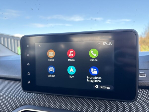 Introducing the 2022 Dacia Sandero Stepway TCe 90 Comfort 5Dr Hatchback in solid Glacier white, boasting a sleek design with chrome details such as the longitudinal roof bars and radiator grille. This vehicle with just 13000 miles on the clock features automatic lighting and wipers for added convenience. The interior is designed with comfort in mind, featuring fabric upholstery and height-adjustable seats and steering wheel. Stay connected on the go with an 8"" Media display including DAB radio, smartphone replication, Bluetooth, and Apple CarPlay/Android Auto compatibility. Safety is paramount with ABS, emergency braking assist, ESC, and multiple airbags. The rear of the vehicle offers convenience with features like rear parking sensors, reversing camera, and rear electric windows. This Sandero Stepway also includes modern technologies such as keyless entry, eCall emergency system, and a tyre pressure monitor for peace of mind on the road.