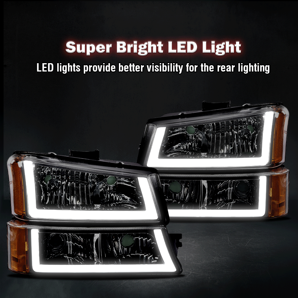 PRODUCTFIT FOR 03-06 SILVERADO AMBER ​CORNER CHROME HOUSING HEADLIGHT LAMP W/LED DRL