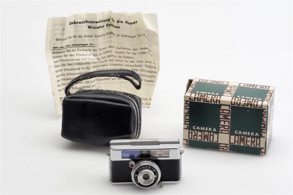 Everything is carefully checked with bright light sources and appropriate technical camera testing equipment.Homer 16 Hit Type Camera w. Box Miniature Spy Camera