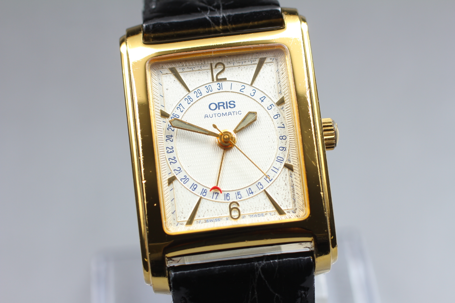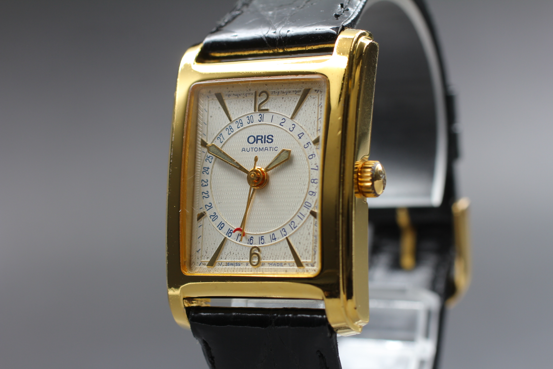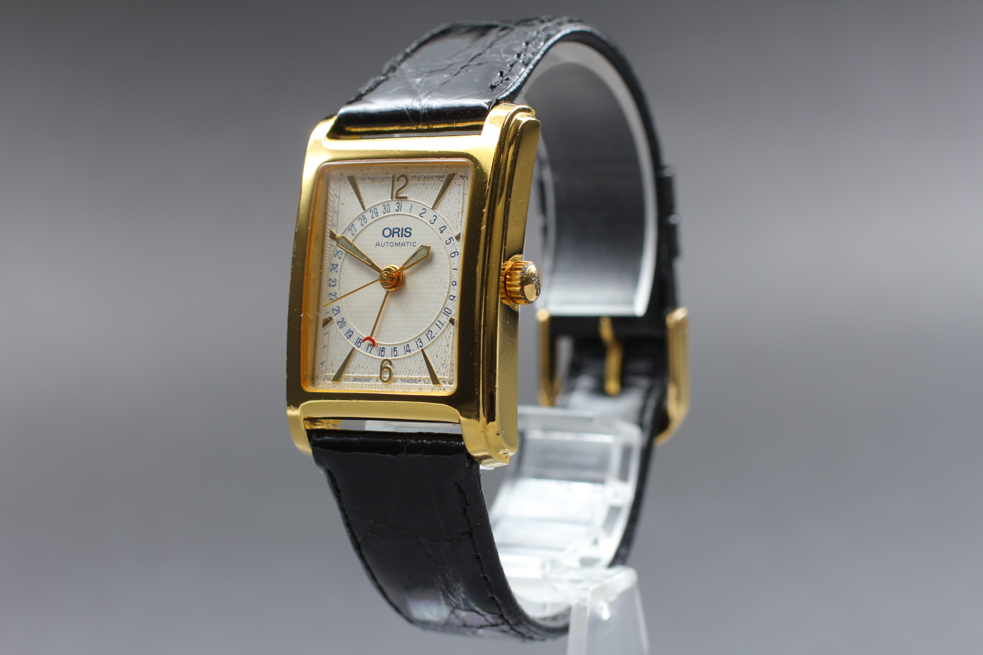 [EXC+5] Vintage ORIS Rectangular Pointer Date B7460 Gold Men's Automatic Watch From JAPAN U741