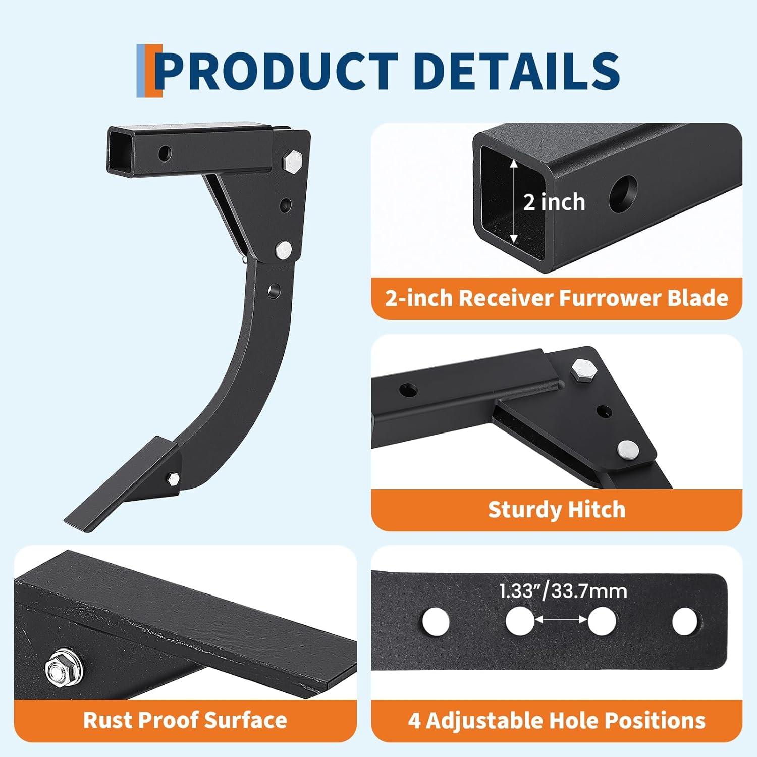 Precision Depth for Professional Results: Achieve the perfect depth for any project with our adjustable atv plow system. Featuring four precision spaced holes (1.33 inches apart), this plow allows you to customize soil penetration for seed sowing or drainage. Whether you are using it as utv accessories or on a compact tractor, the versatile design solves the problem of uneven trenching, making it far more effective than manual tools for large scale landscaping.