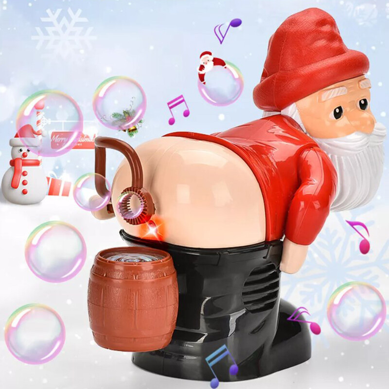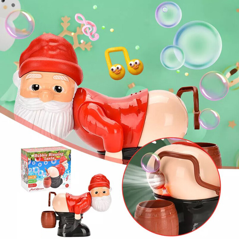 Weihnachts-Weihnachtsmann-Blasengebläse mit Musik und Licht, Zwerge, die Seifenblasen-Spielzeug furzen, originelles Weihnachtsgeschenk für Jungen und Mädchen