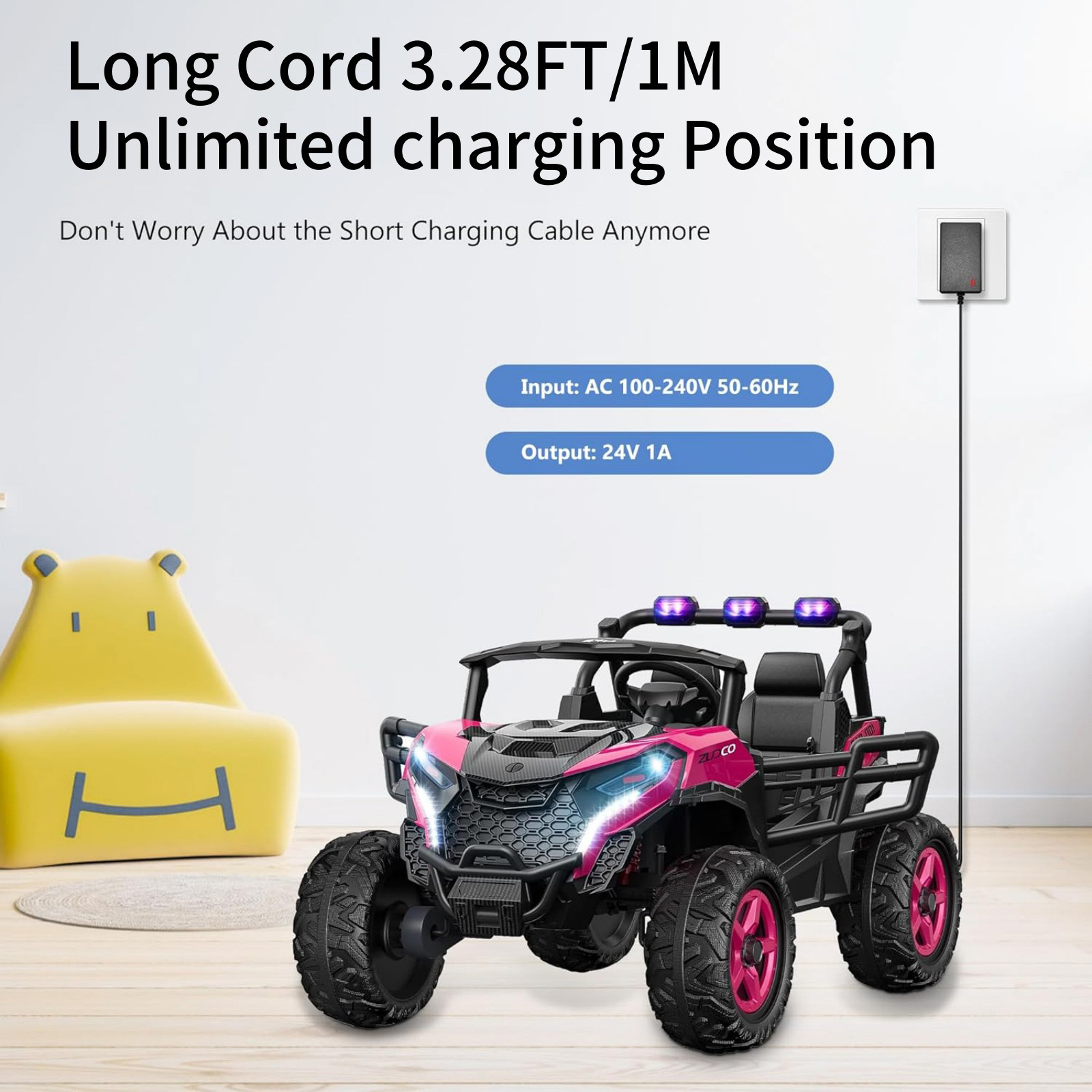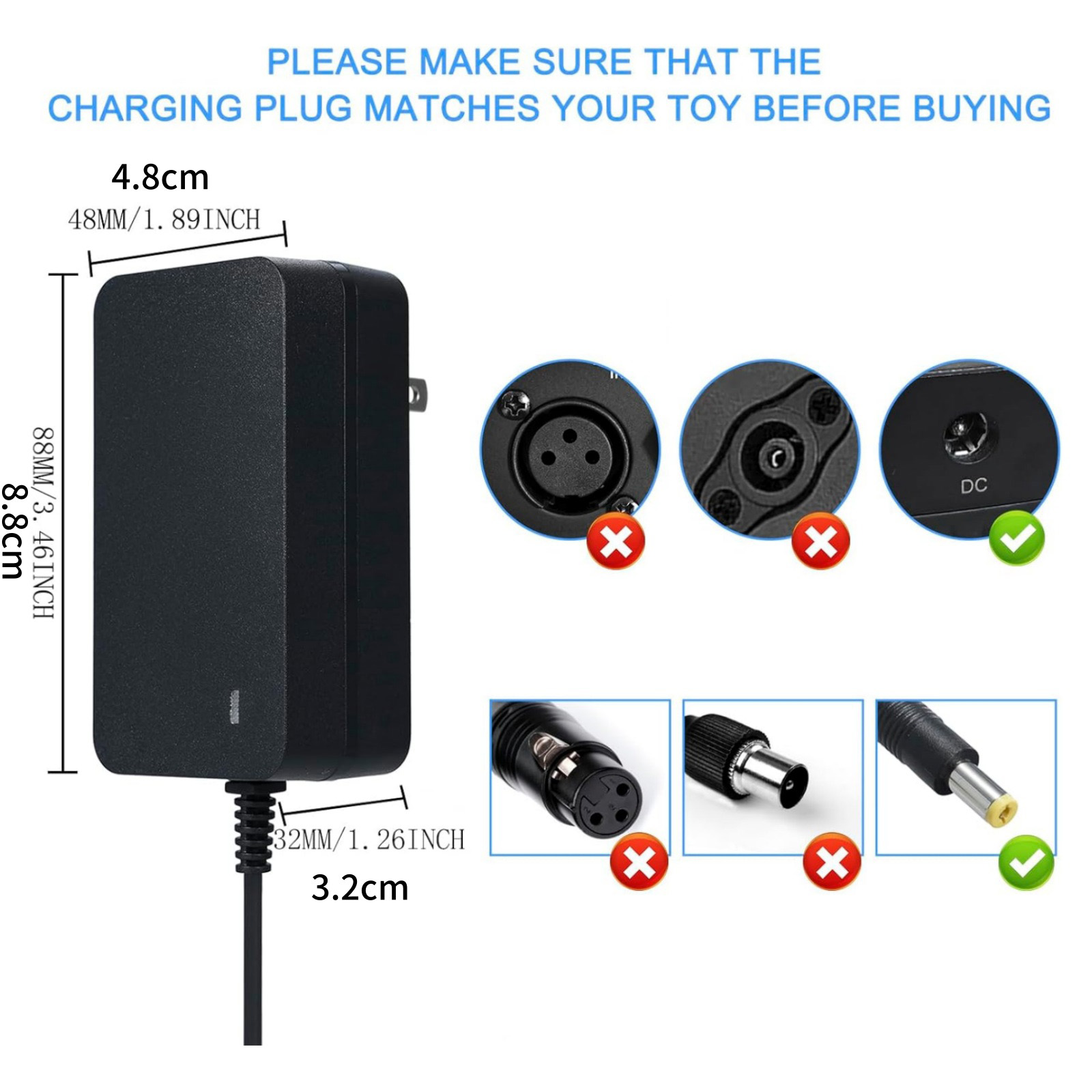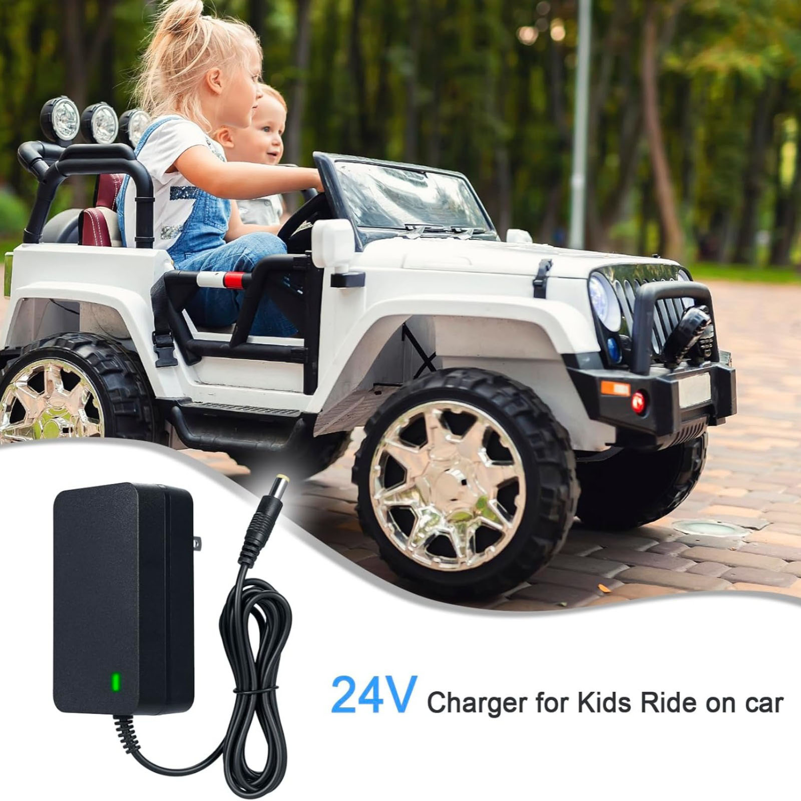 1. Compatibility: 24V Kids Powered Charger Is Suitable For 24V Kids Electric Ride-On Cars, Compatible With Electric Strollers, Ride-On Toys, Is The Best Choice For Continuous And Stable Power Supply.