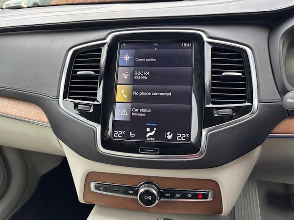 12V Socket - Front, 12V Socket - Rear, 9in Centre Console Touch Screen, Access to a Range of Selected Web Apps and Internet Browser, Bluetooth Handsfree System, DAB - Digital Audio Broadcasting Radio, Emergency Call, European Mapping, Hard Disk Drive for Music Storage, RDS-TMC - Traffic Message Channel, Sensus Connect with High Performance Sound, Sensus Navigation, Speakers x10, USB and AUX Input, Volvo On Call, CD Player, 12.3in Active TFT Crystal Drivers Information Display, Cruise Control, DAC - Driver Alert Control, LDW - Lane Departure Warning, Rear Park Assist, Road Sign Information Display, Tyre Pressure Monitoring System, Voice Activated Control, 20in Alloy Wheels - 10-Spoke Diamond Cut Light Grey, Chrome Door Handle Deco Strip and Window Surround, Chrome Side Mouldings and Incription Logo, Door Mirrors - Body Coloured, Door Mirrors - Power Folding with Ground Lights, Door Mirrors with Memory, Electric Windows - Front and Rear, Front Grille - Matt Silver with Chrome Surround, Locking Wheel Nuts, Roof Rails - Silver, Twin Exhaust with Integrated End Pipes, Tyre Sealant Kit and Compressor, Daytime Running Lights, Front LED Fog Lights with Cornering Function, Headlight Cleaning System, Headlights - Active Bending, Headlights - Cornering Light Function, Headlights - High Beam Assistant, Headlights - LED, Headlights - Levelling System, Headlights - Tunnel Sensor, High Level LED Brake Light, Home Safe and Approach Lighting, 3 Spoke Leather Steering Wheel, A-Pillar Parking Ticket