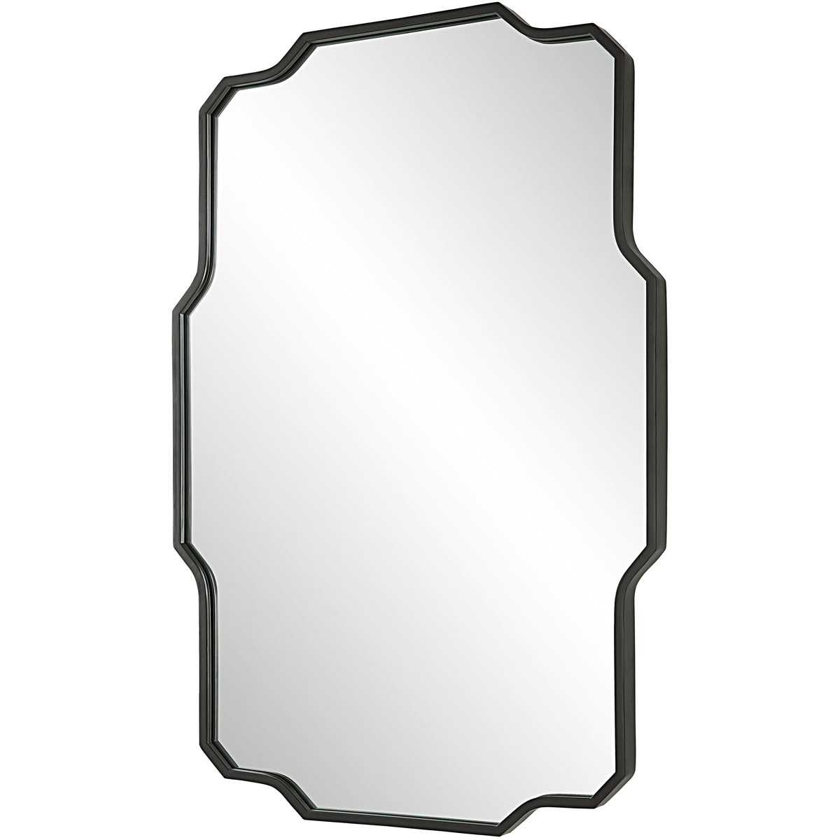 Inspired By Traditional Silhouettes, This Mirror Features An Iron Frame With Linear Details Married With Graceful Curves, Finished In A Contemporary Matte Black. May Be Hung Horizontal Or Vertical.