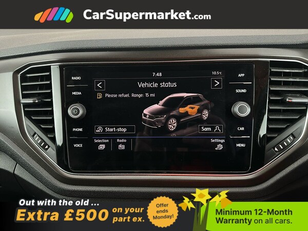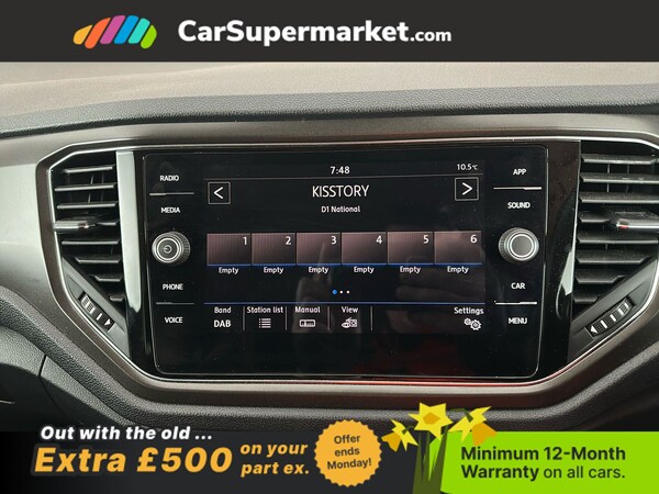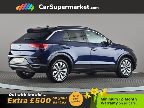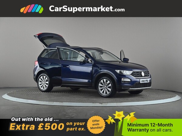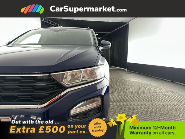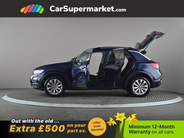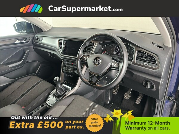 Volkswagen T-Roc 1.0 TSI SE (Blue) A versatile compact SUV with solid technology and comfort. Includes adaptive cruise control, App-Connect, Bluetooth, digital radio and Apple CarPlay/Android Auto. Minimum 12-month warranty. Last serviced 13/03/2026. MOT due 29/07/2026.