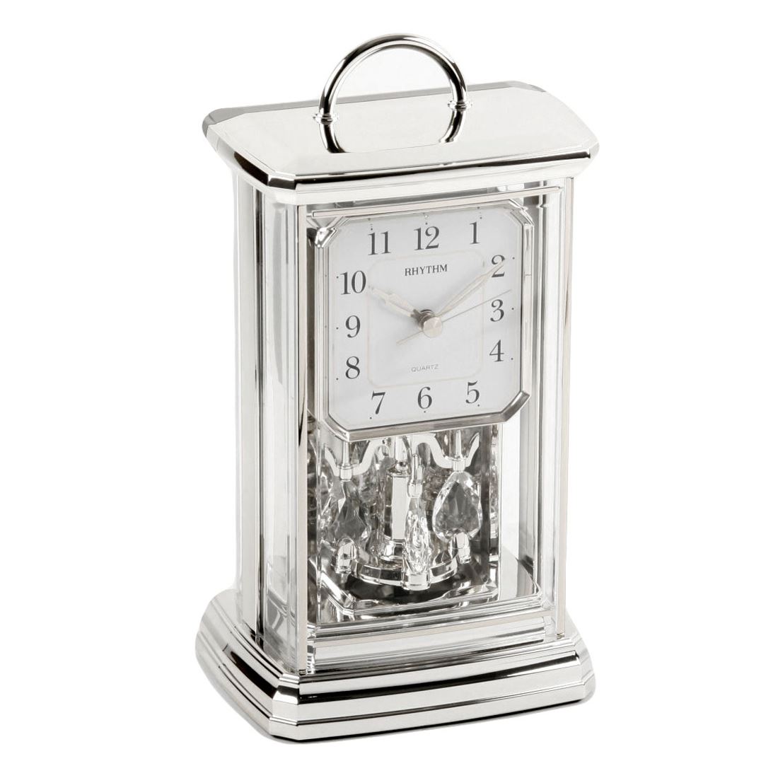 Rhythm Silver Effect Swarovski Crystals Pendulum Oblong Case Mantel Clock.