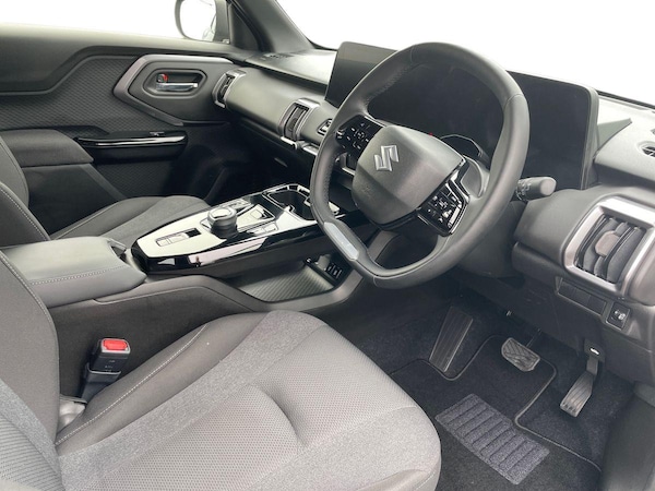 The 2025 Suzuki E-Vitara 128kW Motion 61kWh 5-door Auto Estate in a stylish bluish black colour comes with an array of advanced features. From its 18"" alloy wheels to the LED daytime running lights and high beam assist, this electric SUV offers a blend of style and technology. Inside, the cabin is equipped with creature comforts like automatic air conditioning, heated seats, and a heated steering wheel. Safety features are plentiful, including adaptive cruise control, blind spot monitoring, and multiple airbags. The Suzuki E-Vitara also boasts modern tech such as a 10.1-inch central multimedia display, navigation system, and wireless smartphone link with Apple CarPlay and Android Auto integration. With its spacious interior, practical features like selectable driving modes and selectable pedal mode, this electric vehicle is designed to offer a comfortable and efficient driving experience.