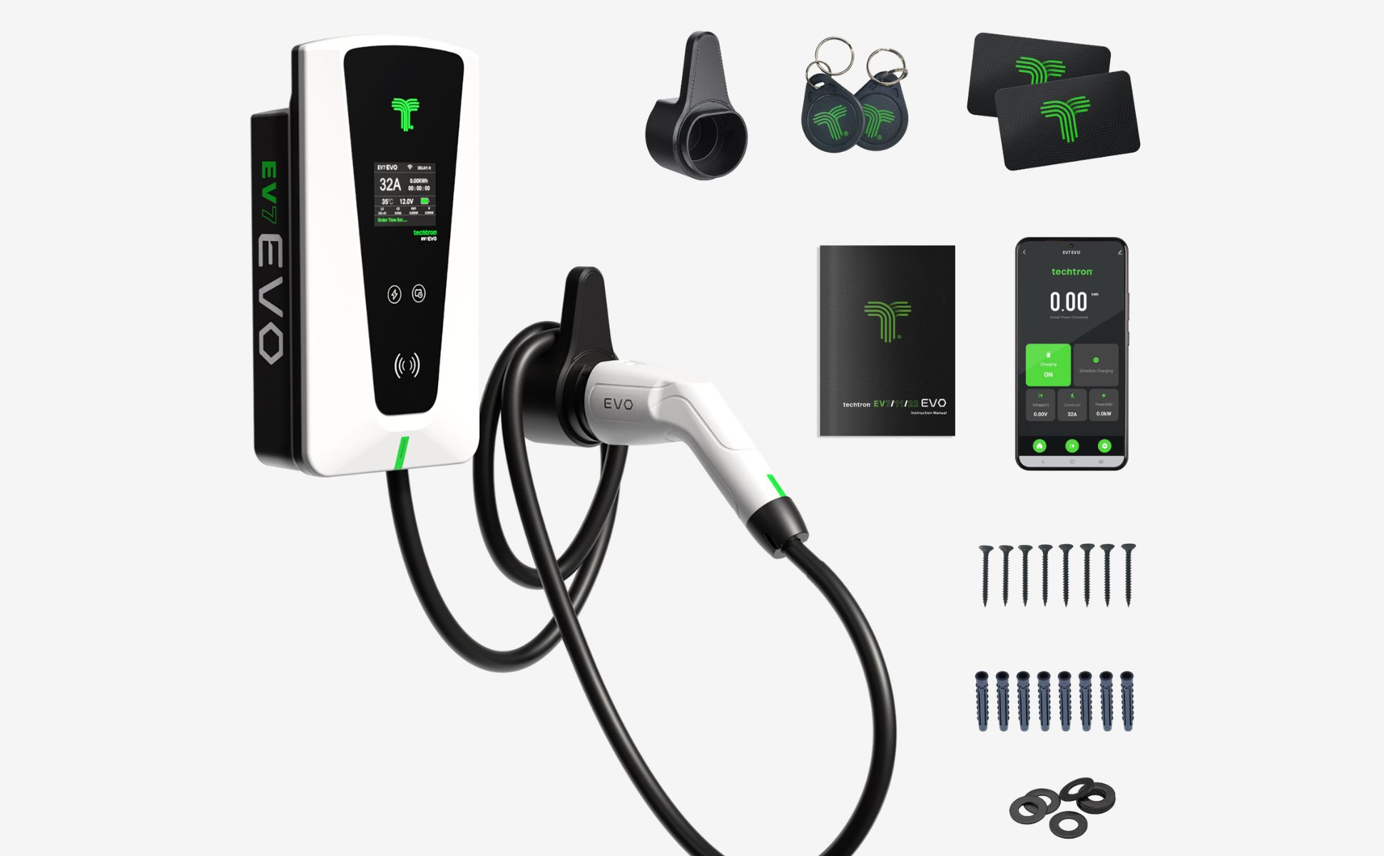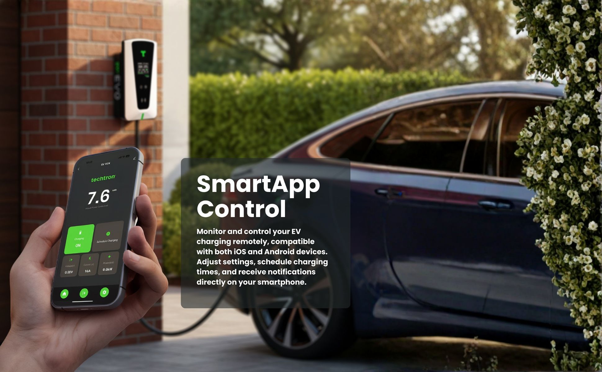 The techtron® EV11 EVO is a powerful 11kW Type 2 smart EV charger designed for fast, reliable three-phase home charging. With Wi-Fi and Bluetooth connectivity, the techtron® Smart App lets you monitor sessions, adjust current, schedule charging and manage energy use remotely. Built with a premium tempered glass front, bright LED status display and IP65 weatherproof protection, it’s ideal for both indoor and outdoor installation.