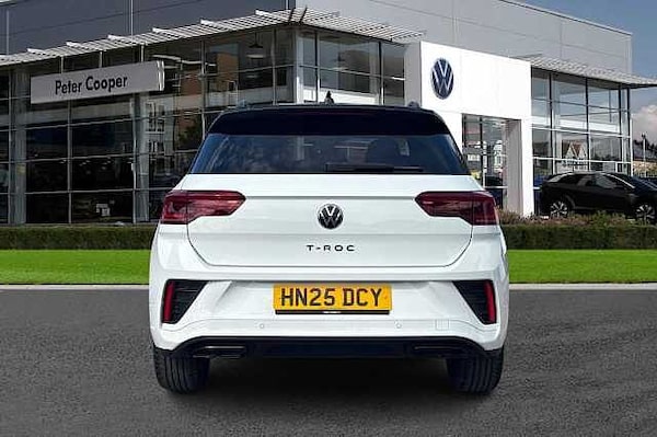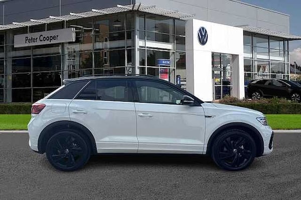 Outside mirror electr., DAB radio, Air conditioning, LED daytime running lights, Electric windows, Electronically retractable wing mirror, Heated wing mirror, Hill holder, Park assistance front, Parking assist system: passive, Rain sensor, Aluminium wheels, USB, ABS, Active brake assist, 2x Front airbags (driver + passenger), ESP, Multifunctional steering wheel, Park Distance Control, Differential lock, Front wheel drive, Traction control, 5 seats, Ambient lighting, Centre arm rest, Divided back seats, ISOFIX Child seat fastener, Leather, Leather steering wheel, Sport seat, Right-hand drive, Delivery from 30.09.2025, 5 doors, Heated front window, Speed limit: 129 mph Paint - Special, Special solid - Pure white with black roof Exterior Features, Front windscreen wiper with intermittent wipe and 4 position delay, Heated rear window, Power windows with comfort operation and circuit breaker, Rain sensor, Rear wash/wipe with intermittent wipe setting, Rear shock absorption chassis with increased ride height, Extended roof spoiler, External USB type C socket and charging sockets, Illuminated front grille, R-Line design body coloured bumpers, Rear exhaust tailpipe, Rear side wing doors, Automatic hazard lights activation under emergency braking, Automatic headlight control with LED separate daytime running lights with coming/leaving home function, Dynamic cornering light, IQ LED matrix headlights, LED 3rd brake light, LED rear number plate lights, LED rear tail lights with dynamic turn signal, Light mode for poor weather, rain, fog or snow, Rear fog light on one side and reversing lights on both sides, Safety, ABS, City emergency braking and pedestrian monitoring, Electronic parking brake, Electronic Stability Control (ESC) inc EDL (Electronic Differential Lock) and ASR (Traction Control), Front disc brakes, Hill start assist, Rear disc brakes, Volkswagen roadside assistance, Advanced driver attention and drowsiness monitor, Lane keeping system Lane Assist, Modified key software - reduce switch off time for key status change to Long no motion, Park assist including front and rear parking sensors, Power assisted speed sensitive steering, Auto dimming interior rear view mirror, Electrically adjustable and heated door mirrors, Exterior mirrors aspherical on driver side, convex on front passenger side, Remote electrically foldable door mirrors, puddle lights and reverse activated passenger's door mirror, 3 point height adj front seatbelts + pretensioners, 3 point seatbelts in outer rear with ECE label, Child locks on rear doors, Driver and front passenger airbag with front passenger airbag deactivation, Driver and front passenger safety-optimised head restraints, Drivers seatbelt reminder, Front and rear passengers curtain airbag system including front side airbags, Predictive pedestrian protection, Two tone horn, Tyre pressure loss indicator, Interior Features, Front + rear carpet mats, Air care climatronic air conditoning system with active combination filter and 2-zone temperature control, 12V power socket in centre console, 4 load lashing points in luggage compartment, Artvelours cloth upholstery, Black roof lining, Chrome plated radiator grille inserts, air vent surrounds and light switch surrounds, Door and side trim panel with leatherette insert, Drawer under drivers seat, Front centre armrest, Front cupholders x 2, Front scuff plates with R Line logo, Glove compartment door with light, Leather gearshift handle, Leather wrapped multifunction steering wheel with paddle shift, Load-through provision with cup holder when folded down ('Unsplit rear seat bench, split folding backrest, with centre armrest), Stainless steel pedals, Storage compartment in left and right luggage area, Storage compartment in rear doors, Storage compartments in driver and front passenger doors, Variable boot floor, height adjustable and removable, Front footwell illumination, Front reading light, Instrument lighting, white adjustable panel illumination, Interior ambient lighting and surround lighting, Interior light delay, Luggage compartment lighting, Sunvisors with illuminated vanity mirrors, Audio / Communications, Mobile phone interface, Online services, Wireless app connect, DAB Digital radio, Diversity antenna for FM reception, Front and rear 6 speakers, Music playback - MP3, WMA and AAC files, Premium USB cable in choice of either Apple or Android smartphone compatibility, SD card slot, Simultaneous pairing of 2 compatible mobile devices, Title and cover art display, We Connect and We Connect Plus functionality, Driver Convenience, Tailgate/trunk lid release from outside, Miscellaneous, 10.25"" Digital cockpit pro, Emergency call service, Service interval indicator, Think blue trainer driver tips and journey analysis, Warning sound and light for front seatbelts unfastened, Battery regeneration during braking, Start/stop function with battery regeneration, Packs, Winter pack without heated windscreen washer jets - T-Roc,