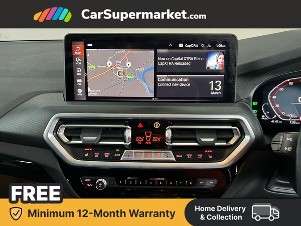 Presented in white, this BMW X3 M Sport offers strong diesel performance with mild hybrid efficiency and a high level of specification. Highlights include satellite navigation, BMW Live Cockpit, cruise control, heated front seats and Bluetooth connectivity. The vehicle also benefits from optional Mineral White paint, sun protection glass, Technology Package and Vernasca black leather with grey stitching, with factory options totalling £2,065.