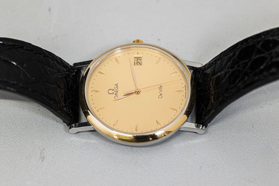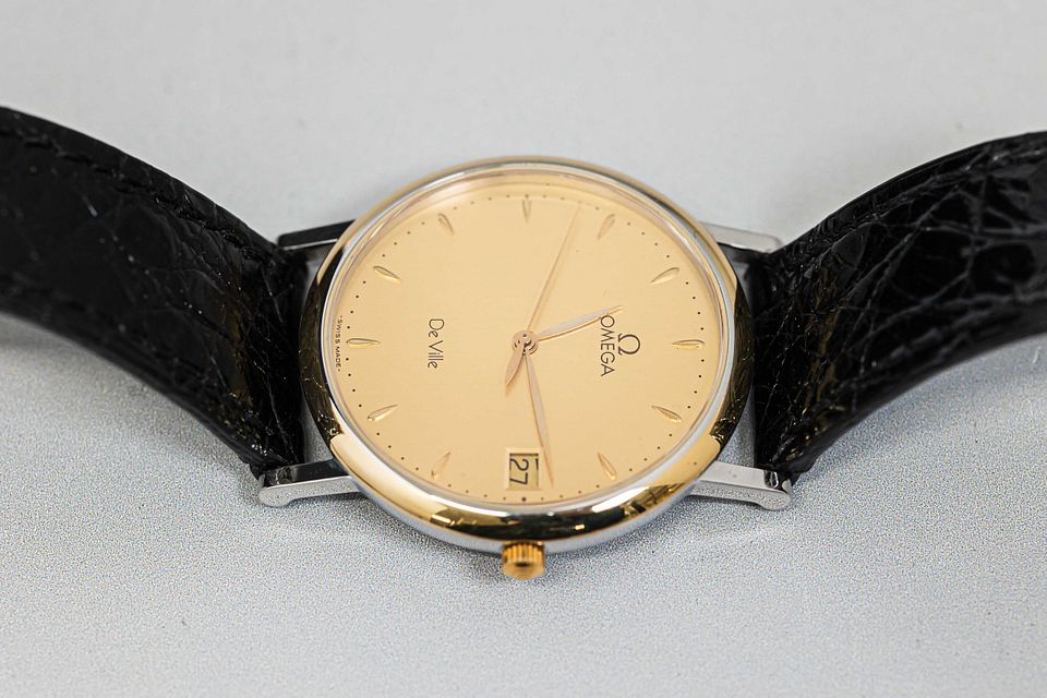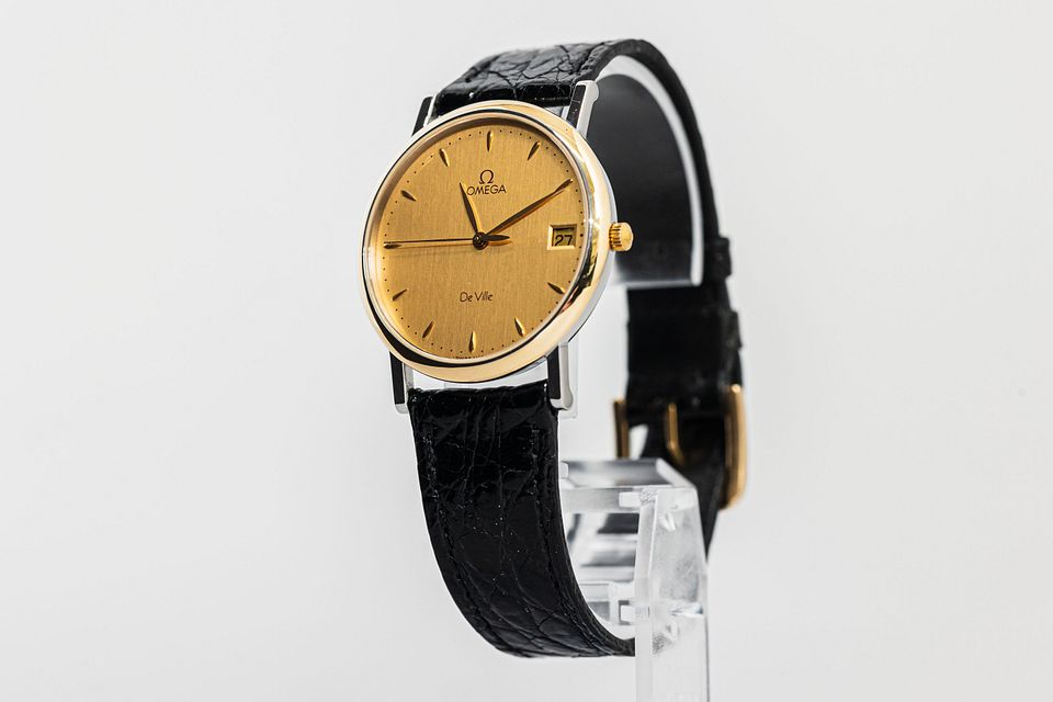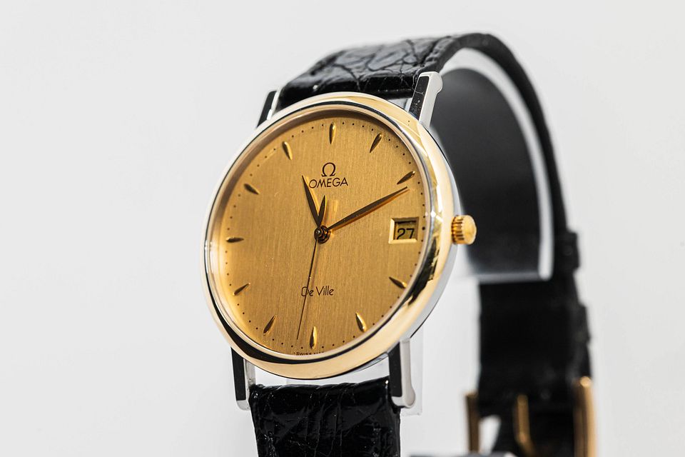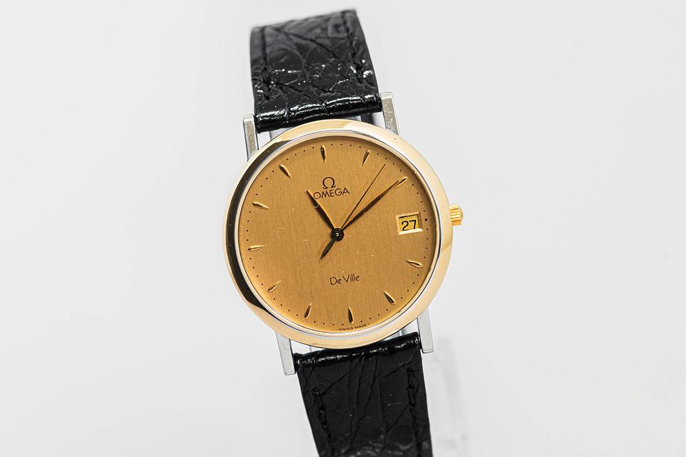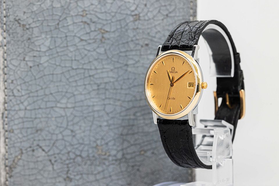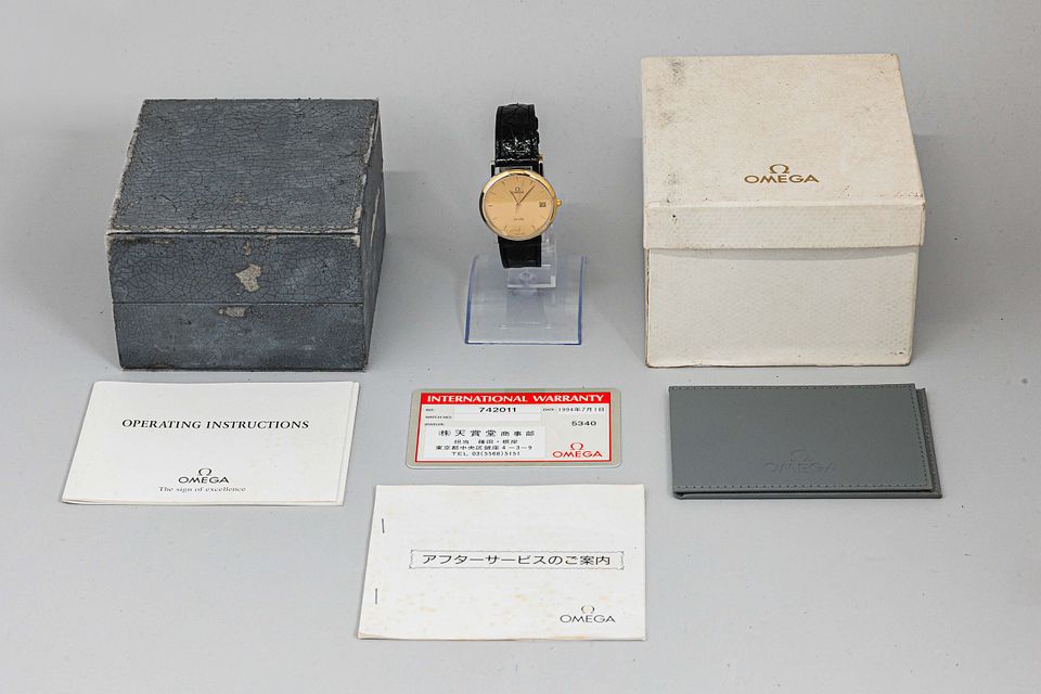 Full Set *NEAR MINT* Vintage OMEGA De Ville Cal.1432 Quartz Date Gold 34mm Men's Watch From Japan