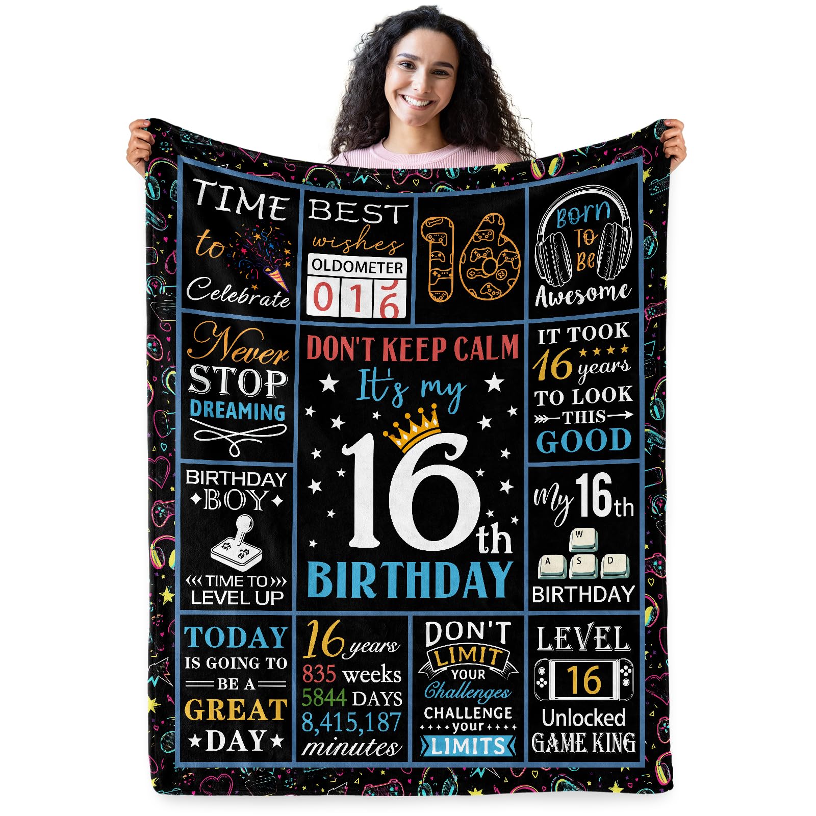 Crafted with game element patterns and funny texts, the birthday blanket is more eye-catching for 16 year old boy with the stylish and unique design.