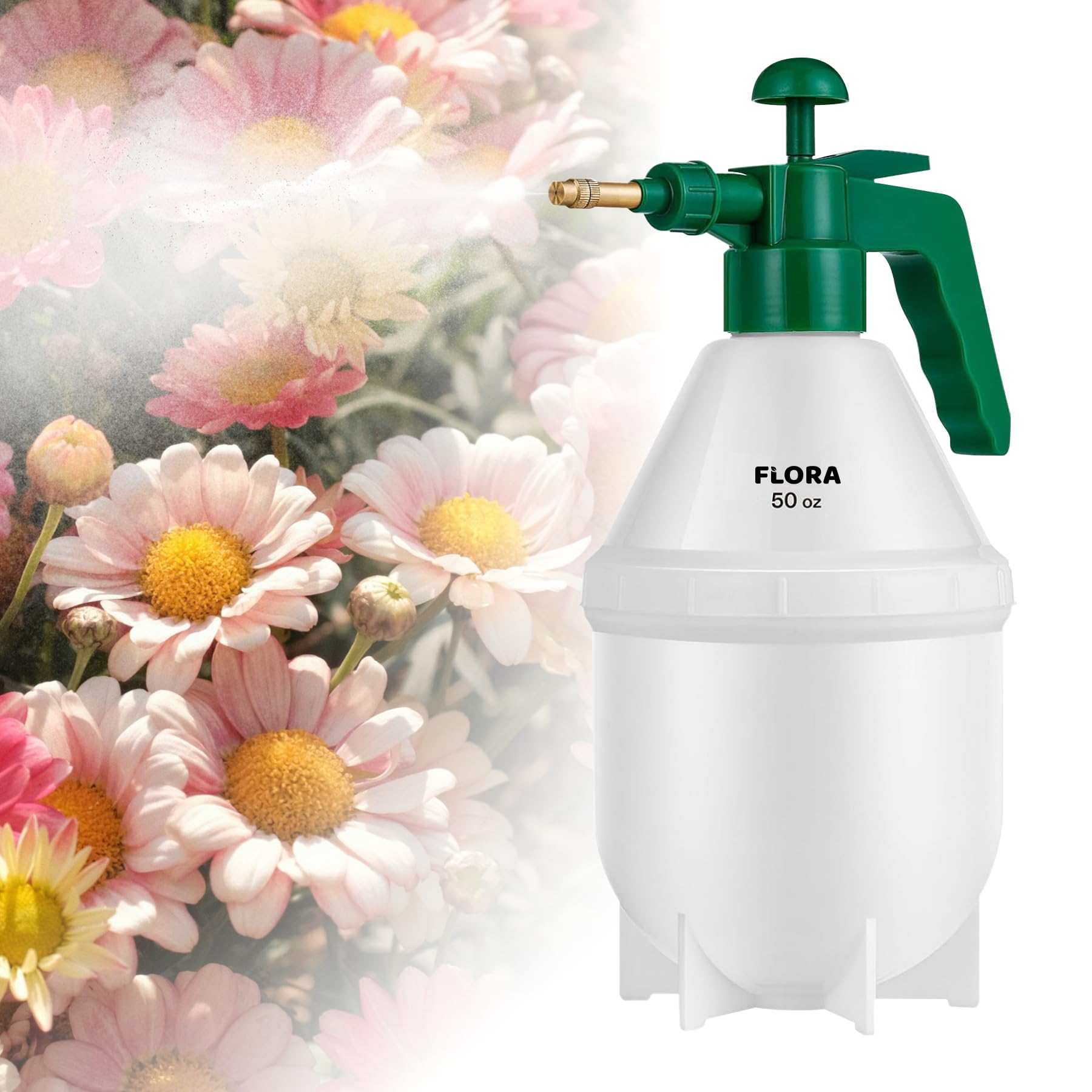 - EXCEPTIONALLY VERSATILE: The FLORA 50-ounce handheld pump sprayer meets all your spraying needs—from watering plants to cleaning cars and bathing pets. Designed for both indoor and outdoor use, it’s safe for water temperatures up to 131°F.