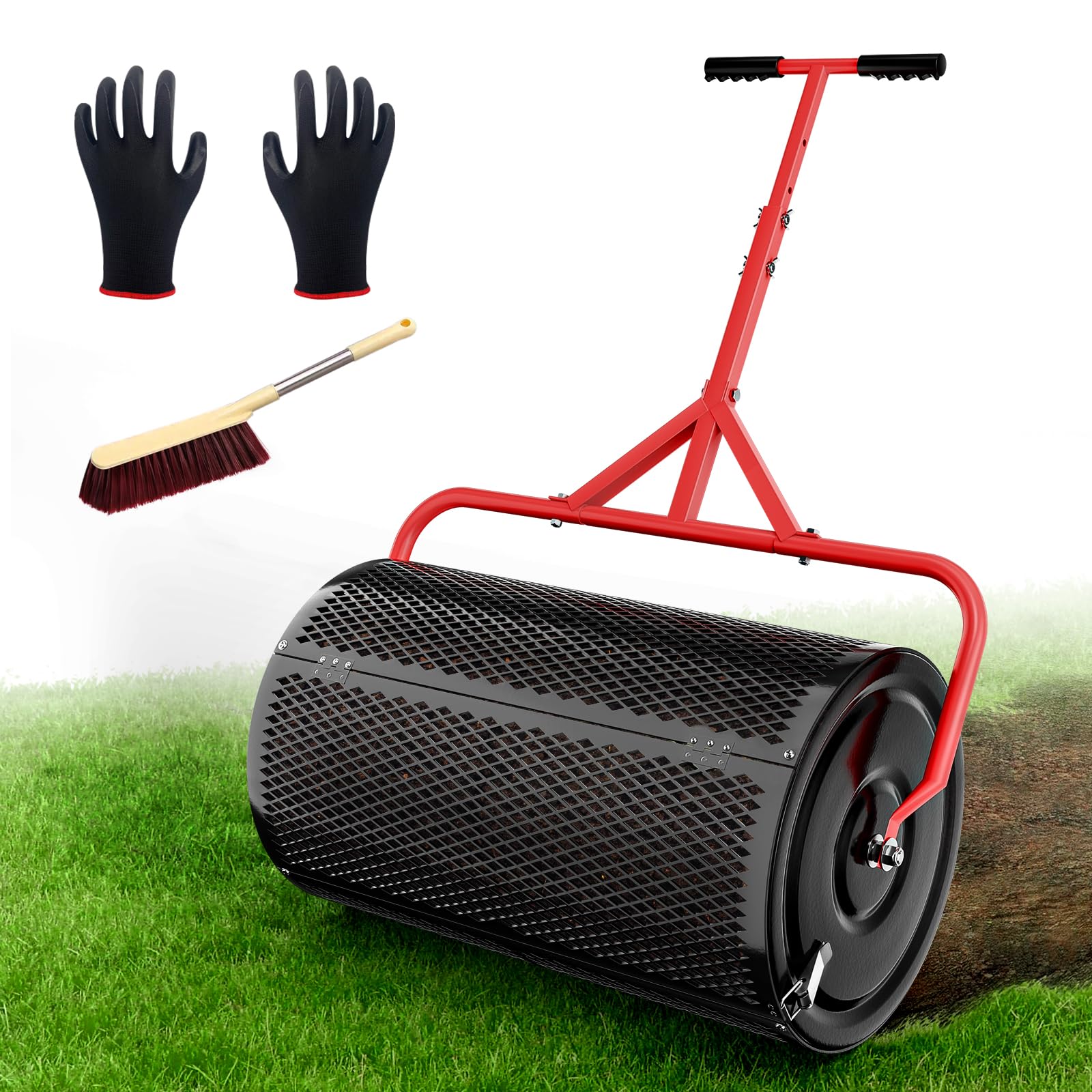 [Adjustable Non-Slip T-handle] Equipped with an adjustable non-slip T-handle, the compost roller provides comfort and ease of use even during extended periods of spreading. This ergonomic handle is designed to reduce fatigue and increase control for users of all statures.