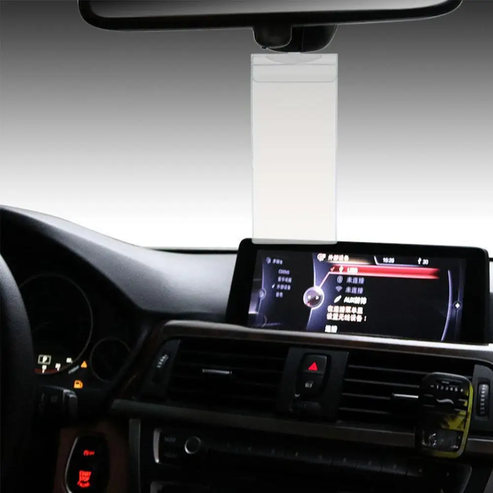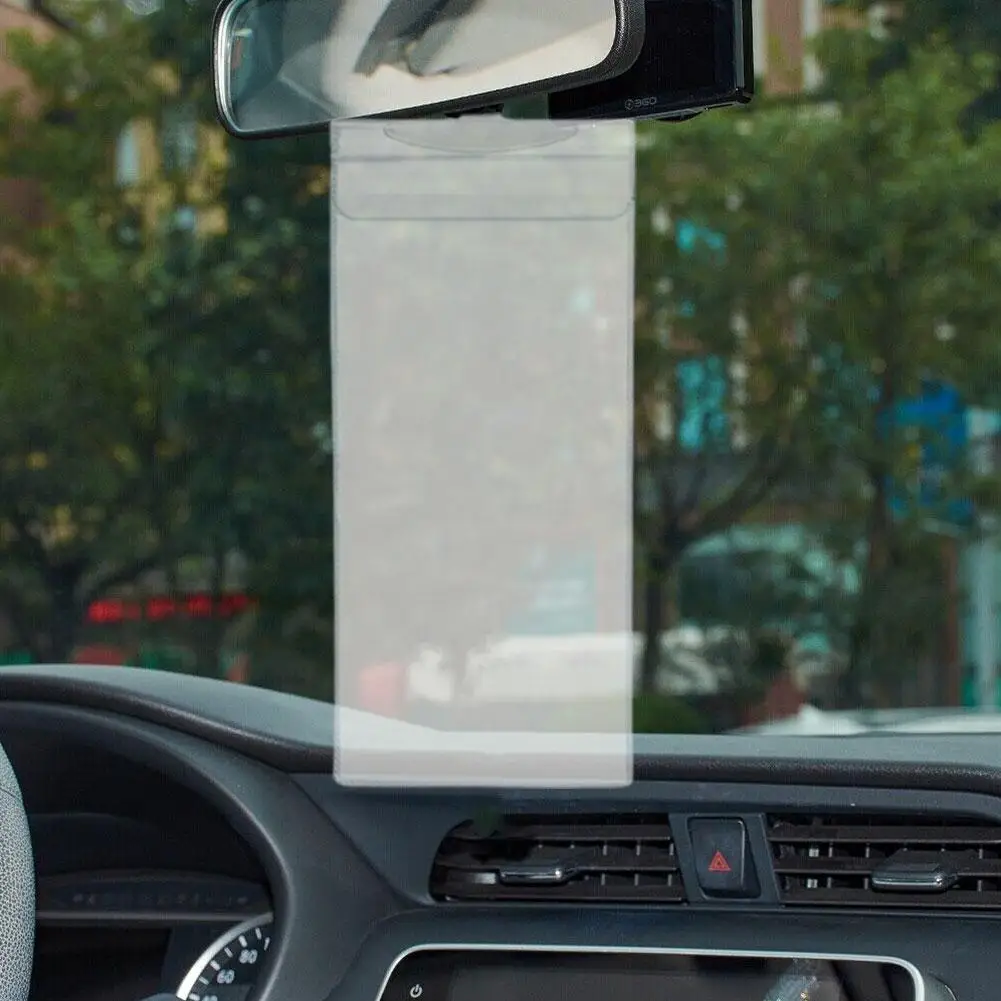 La robusta percha en la parte superior encaja perfectamente alrededor del brazo del espejo retrovisor que está unido al parabrisas.
