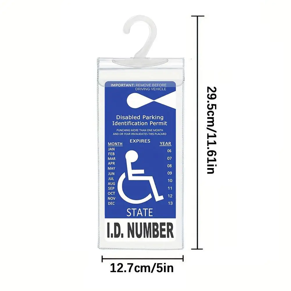 El soporte de placa para discapacitados protege está hecho de plástico transparente de primera calidad y está diseñado para colgar de cualquier automóvil o espejo retrovisor de automóvil.