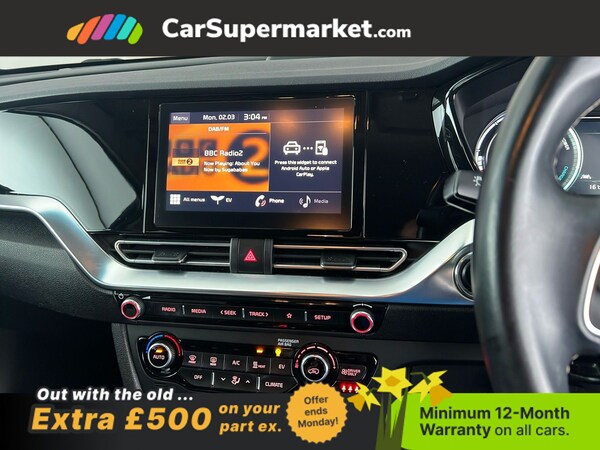Long-range electric model with cruise control, parking sensors, privacy glass and smartphone connectivity via Apple CarPlay and Android Auto. MOT due: 16/01/2027