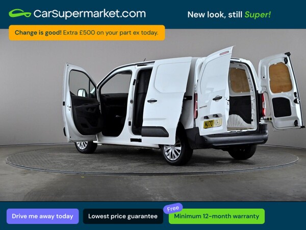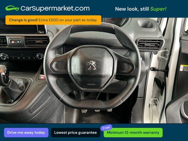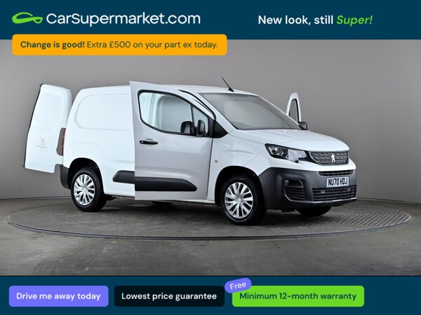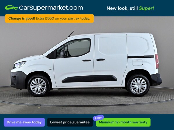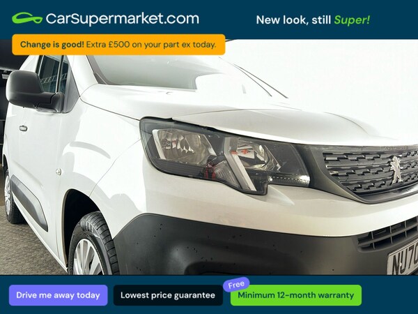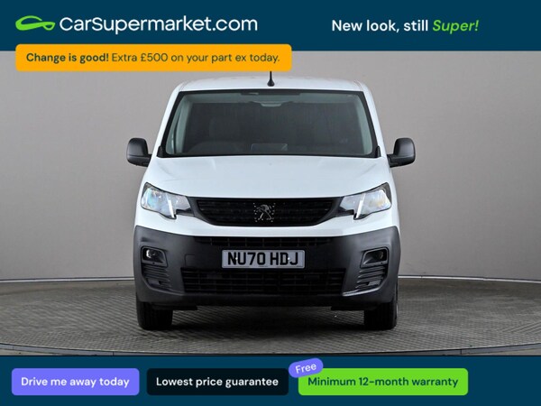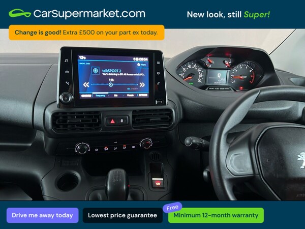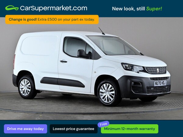 Peugeot Partner 1000 1.5 BlueHDi 100 Professional Van (White) A practical and reliable commercial van for business use, offering efficient performance. Features include Peugeot i-Cockpit, Apple CarPlay, and Android Auto. Last serviced 09/03/2026. MOT due 08/03/2027.