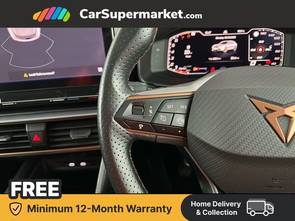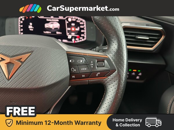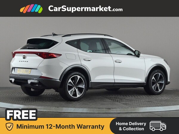 Cupra Formentor 1.5 TSI 150 V1 (White) A sporty SUV with bold styling and engaging drive. Features digital cockpit, sat nav, adaptive cruise control, parking sensors, Apple CarPlay and keyless entry. Minimum 12-month warranty. Last serviced 13/03/2026. MOT due 24/01/2027.