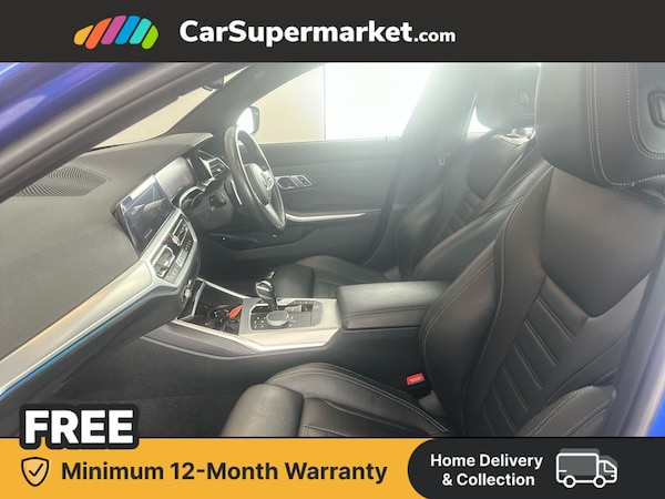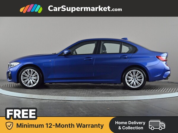 BMW 3 Series 330e M Sport Step Auto (Blue) A plug-in hybrid saloon delivering a balance of performance and efficiency. Includes sat nav and BMW Live Cockpit. Optional extras include aluminium mesh-effect interior trim, Portimao Blue paint, and Vernasca leather interior. Minimum 12-month warranty. Last serviced 30/12/2025. MOT due 10/08/2026.