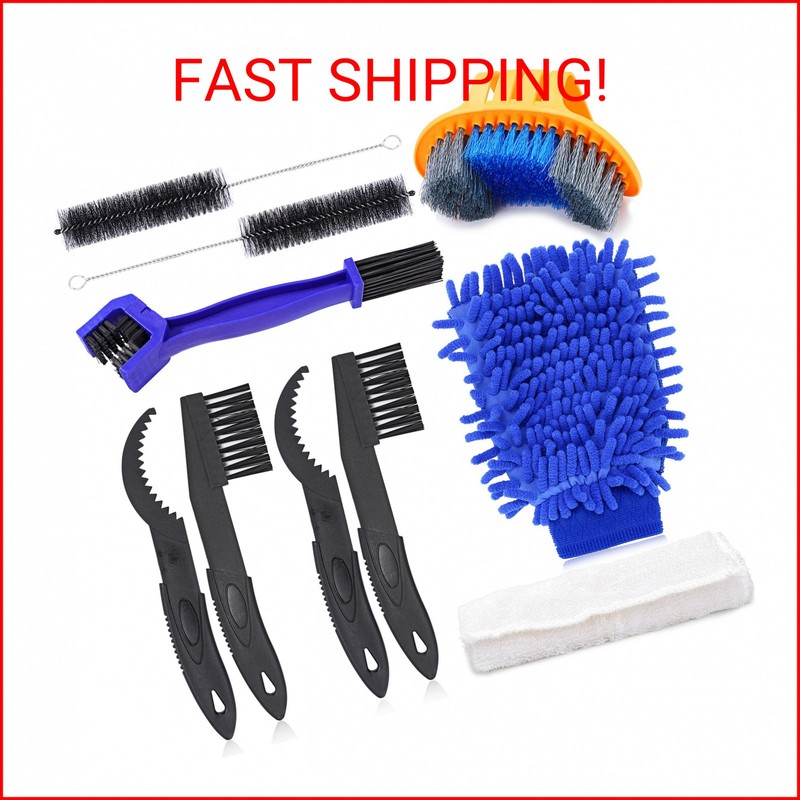 Oumers Bicycle Clean Brush Kit, 10pcs Motorcycle Bike Chain Cleaning Tools Make Chain/Crank/Tire/Sprocket Cycling Corner Stain Dirt Clean, Durable/Practical fit All Bike